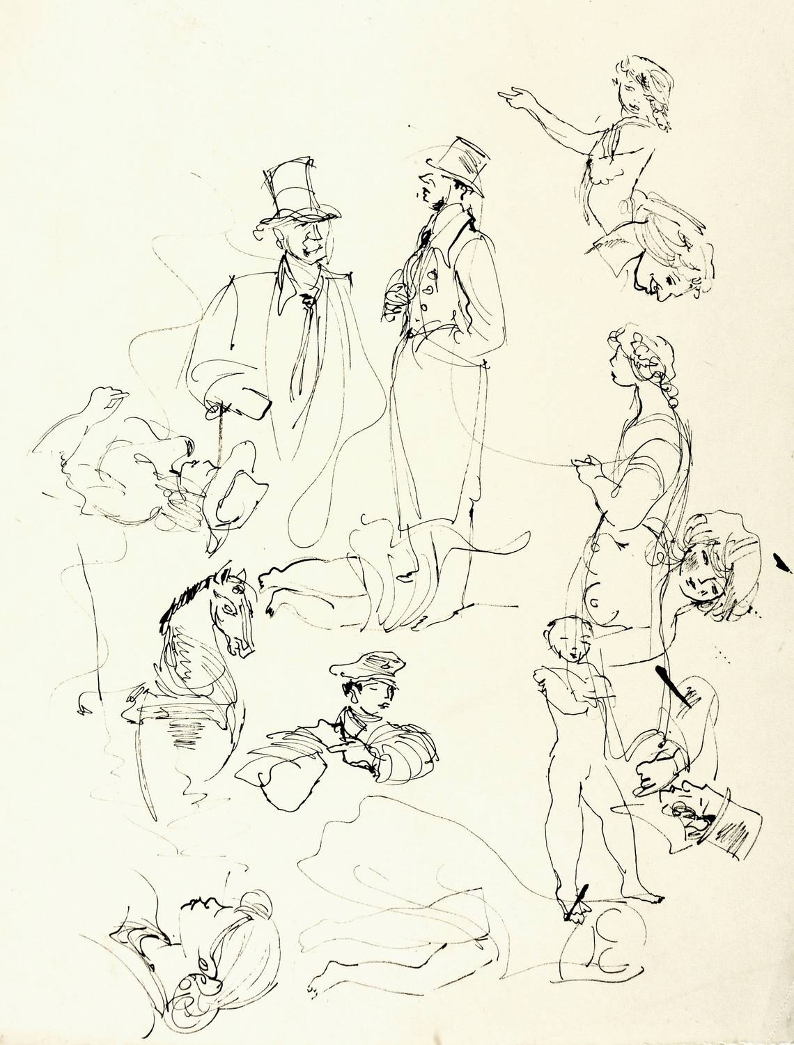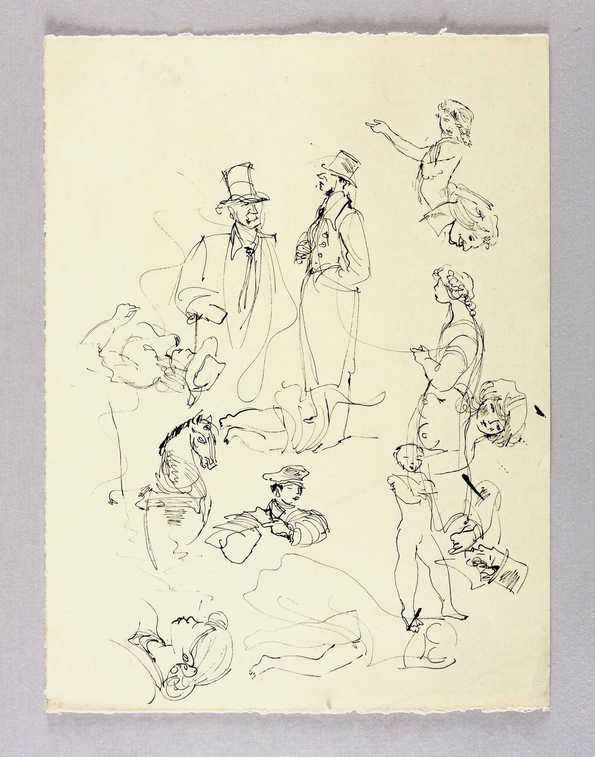 Nicht handsigniert. – Auf der Rückseite weitere Skizzen zu Beaumarchais. – Tadellos. Sehr guter Zustand.