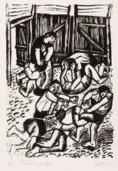 1971. Holzschnitt, in Schwarz, auf hellchamois Velin. – Originale Künstlergrafik, von Lothar Sell. – 19,0 x 13,5 cm (Darstellung / Druckstock), 30 x 21 cm (Blatt).