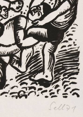 Lothar Sell (1939 Teuenbrietzen - 2009 Meißen). Deutscher Grafiker, Illustrator und Keramiker. 1957-63 Studium an der Hochschule für Bildende Künste Dresden (HfBK), bei Hans Theo Richter und Max Schwimmer. 1966-69 Meisterschüler an der Akademie der Künste Berlin (AdK). 1974-88 Lehrauftrag an der Burg Giebichenstein Hochschule für Kunst und Design in Halle. Mitglied im Verband Bildender Künstler der DDR. Seine Grafiken und Plastiken sind oft geprägt von einem humorigen "bäuerlichen" Charakter. Stilistisch dominiert deshalb eine oft derbe, zumeist auch naive Anmutung. 1976 Illustrationen zu Erwin Strittmatters "Ochsenkutscher". Die Leibesfülle, typisch für Sells Darstellung des menschlichen Körpers, charakterisiert u.a. die Keramiken des Brunnen im Meißner Zollhof.