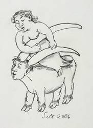 Lothar Sell (1939 Teuenbrietzen - 2009 Meißen). Deutscher Grafiker, Illustrator und Keramiker. 1957-63 Studium an der Hochschule für Bildende Künste Dresden (HfBK), bei Hans Theo Richter und Max Schwimmer. 1966-69 Meisterschüler an der Akademie der Künste Berlin (AdK). 1974-88 Lehrauftrag an der Burg Giebichenstein Hochschule für Kunst und Design in Halle. Mitglied im Verband Bildender Künstler der DDR. Seine Grafiken und Plastiken sind oft geprägt von einem humorigen "bäuerlichen" Charakter. Stilistisch dominiert deshalb eine oft derbe, zumeist auch naive Anmutung. 1976 Illustrationen zu Erwin Strittmatters "Ochsenkutscher". Die Leibesfülle, typisch für Sells Darstellung des menschlichen Körpers, charakterisiert u.a. die Keramiken des Brunnen im Meißner Zollhof.