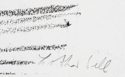 Rechts unten in Bleistift signiert. – Aus einem Verlagskonvolut mit Originalgrafiken, Autografen und Andrucken von Lothar Sell. Mit handschriftlicher Signatur des Künstlers! – Im äußeren Rand oben und unten oberflächlich leichter Papierverlust. Sonst gut erhalten.