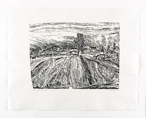 1970. Holzschnitt, in Schwarz, auf Chinapapier. – Originale Künstlergrafik, von Lothar Sell. – Auflage Exemplar Nr. 9/100. – 25,8 x 34,9 cm (Darstellung / Druckstock), 41 x 51 cm (Blatt).