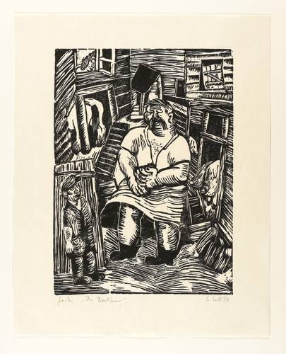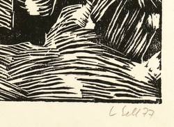 1977. Holzschnitt, in Schwarz, auf rauem Japanpapier. – Originale Künstlergrafik, von Lothar Sell. – 35,5 x 26,0 cm (Darstellung), 47 x 38 cm (Blatt).