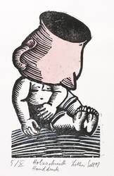 1998. Holzschnitt, in Schwarz, aquarelliert, auf weißem Velinkarton. – Originale Künstlergrafik, von Lothar Sell. – Auflage Exemplar Nr. 5/10. – 18,0 x 10,8 cm (Darstellung), 28 x 17 cm (Blatt).