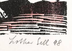 1998. Holzschnitt, in Schwarz, aquarelliert, auf weißem Velinkarton. – Originale Künstlergrafik, von Lothar Sell. – Auflage Exemplar Nr. 5/10. – 27,0 x 17,1 cm (Darstellung), 34 x 23,5 cm (Blatt).