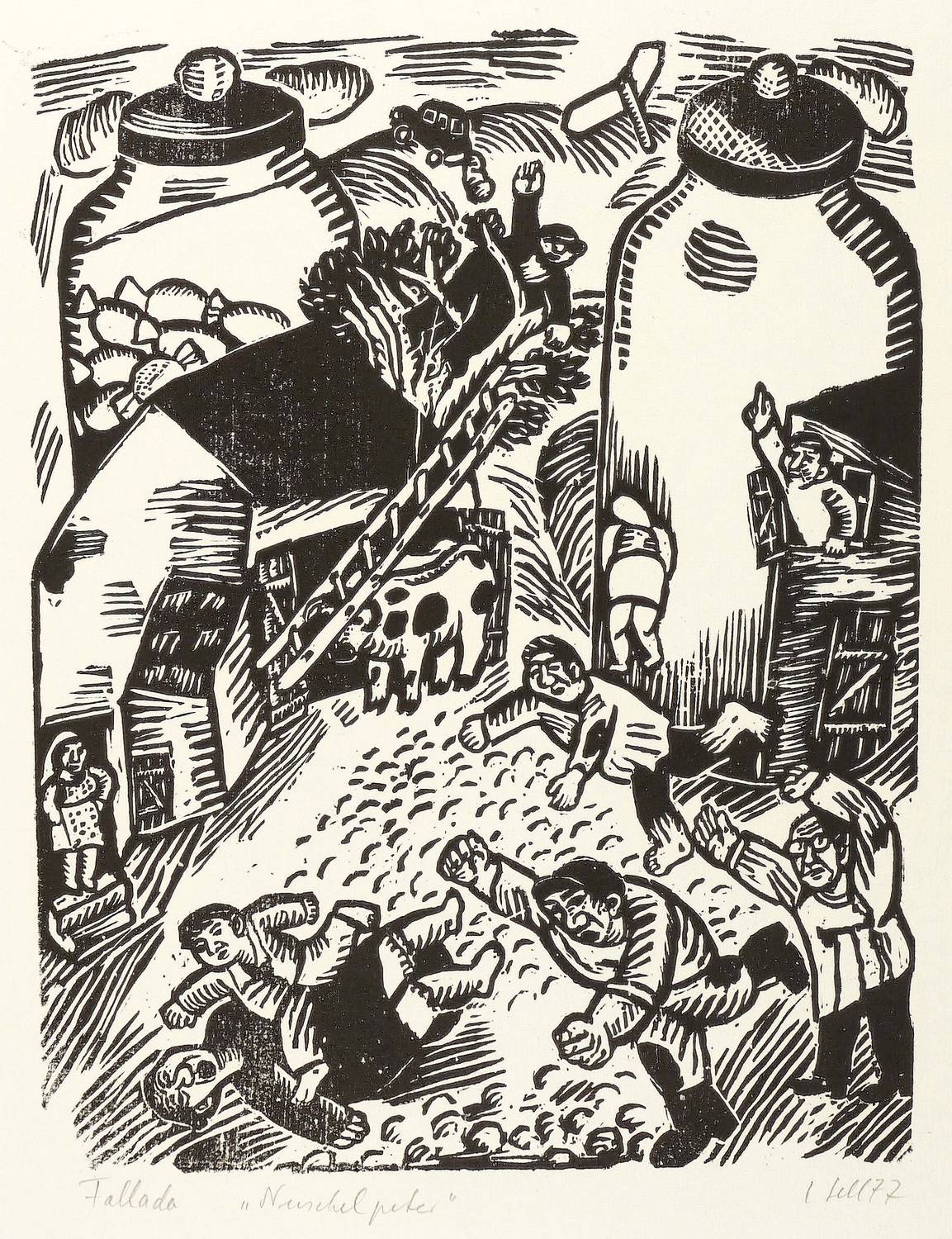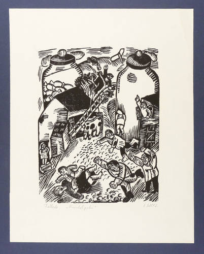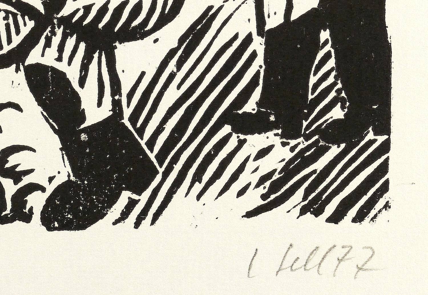 1977. Holzschnitt, in Schwarz, auf Achat-Bütten. – Originale Künstlergrafik, von Lothar Sell. – 32,8 x 25,4 cm (Darstellung / Druckstock), 49 x 39 cm (Blatt).