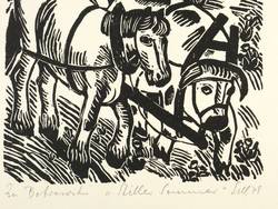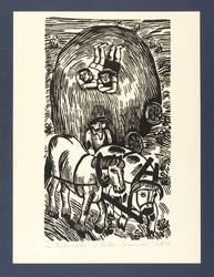 1979. Holzschnitt, in Schwarz, auf hellgelbem Karton. – Originale Künstlergrafik, von Lothar Sell. – 28,3 x 16,1 cm (Darstellung / Druckstock), 32 x 24 cm (Blatt).