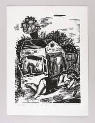 Lothar Sell (1939 Teuenbrietzen - 2009 Meißen). Deutscher Grafiker, Illustrator und Keramiker. 1957-63 Studium an der Hochschule für Bildende Künste Dresden (HfBK), bei Hans Theo Richter und Max Schwimmer. 1966-69 Meisterschüler an der Akademie der Künste Berlin (AdK). 1974-88 Lehrauftrag an der Burg Giebichenstein Hochschule für Kunst und Design in Halle. Mitglied im Verband Bildender Künstler der DDR. Seine Grafiken und Plastiken sind oft geprägt von einem humorigen "bäuerlichen" Charakter. Stilistisch dominiert deshalb eine oft derbe, zumeist auch naive Anmutung. 1976 Illustrationen zu Erwin Strittmatters "Ochsenkutscher". Die Leibesfülle, typisch für Sells Darstellung des menschlichen Körpers, charakterisiert u.a. die Keramiken des Brunnen im Meißner Zollhof.