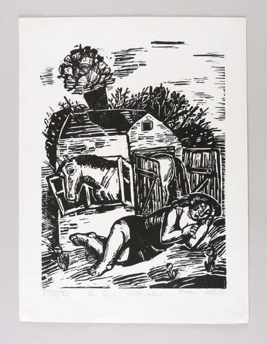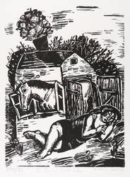 1987. Holzschnitt, in Schwarz, auf weichem wolkigem Velin. – Originale Künstlergrafik, von Lothar Sell. – Auflage Exemplar Nr. XV/XXV. – 39,2 x 28,8 cm (Darstellung / Druckstock), 49 x 36 cm (Blatt).