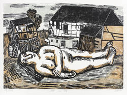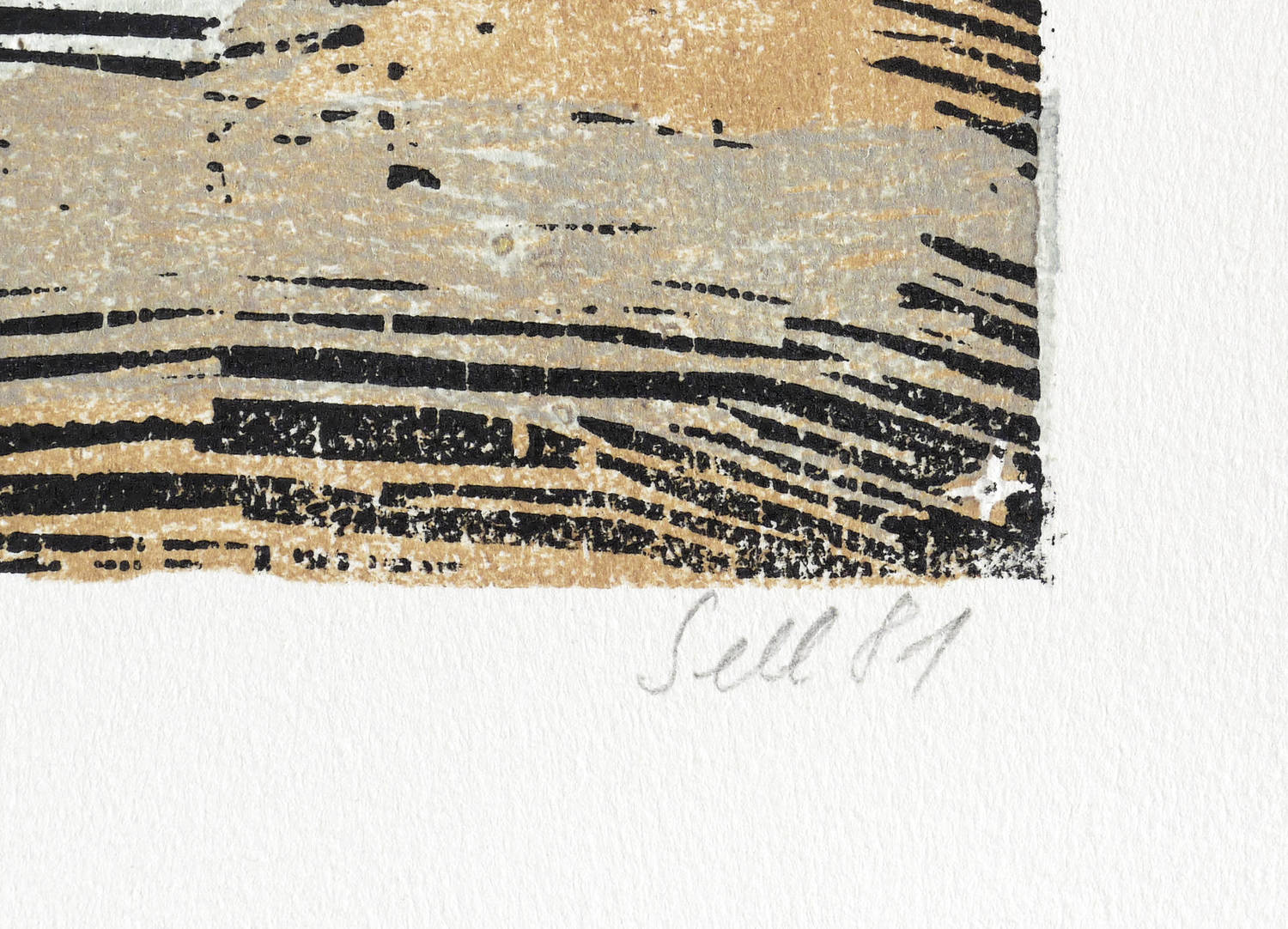 1981. Farbholzschnitt, von 3 Stöcken, auf schwerem hellchamois Hahnemühle. – Originale Künstlergrafik, von Lothar Sell. – Auflage Exemplar Nr. 15/100. – 31,2 x 43,7 cm (Darstellung / Druckstock), 40 x 54 cm (Blatt).