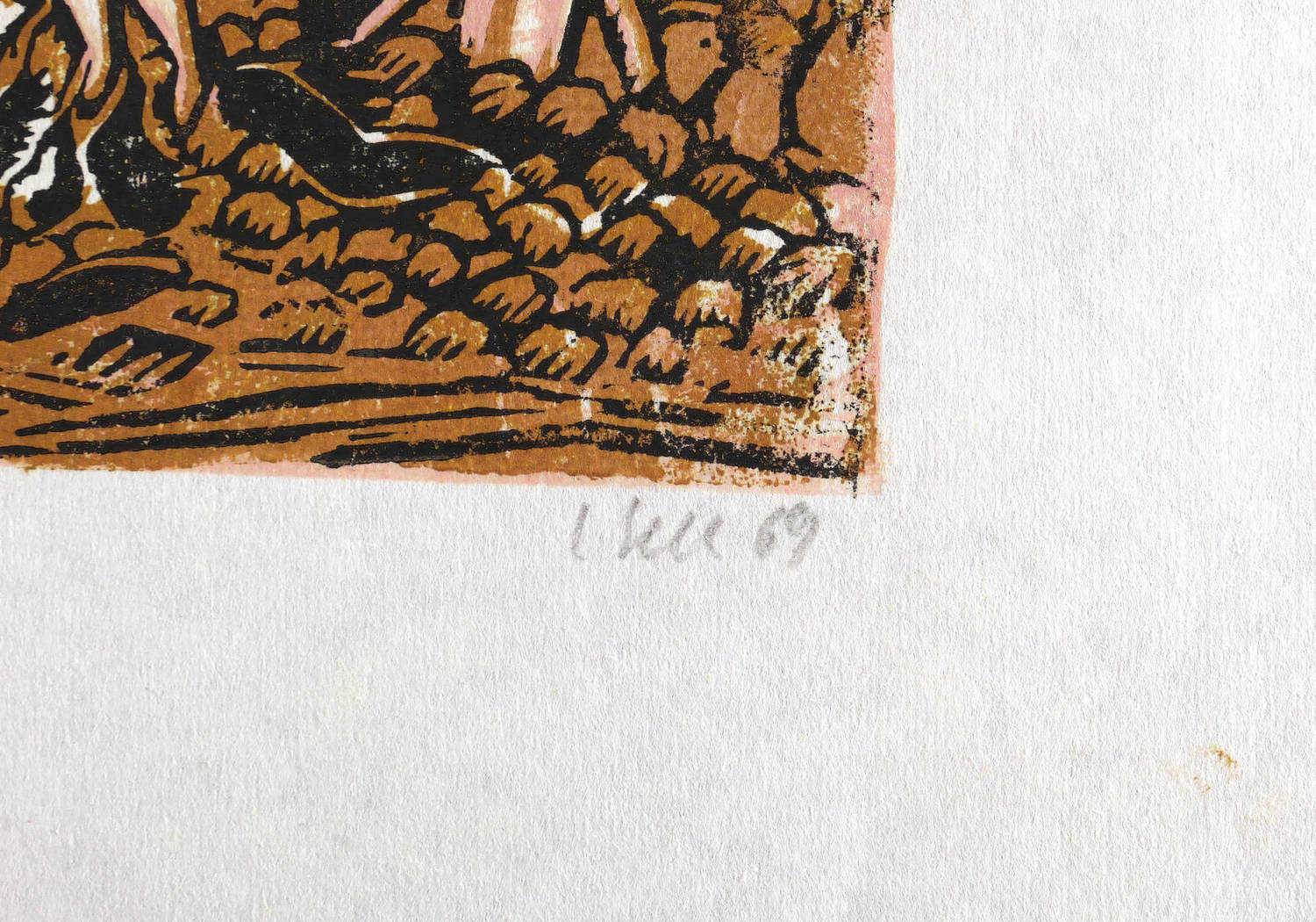 1969. Farbholzschnitt, in 3 Farben, auf rauhem weißem Japan-Imitat. – Originale Künstlergrafik, von Lothar Sell. – Künstlerexemplar (e.a.). – 39,2 x 28,2 cm (Darstellung / Druckstock), 53 x 44 cm (Blatt).