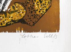 1983. Farbholzschnitt, in 3 Farben, auf weichem weißlichem Velin. – Originale Künstlergrafik, von Lothar Sell. – Auflage Exemplar Nr. 50/90. – 66,5 x 48,0 cm (Darstellung / Druckbild), 60 x 81 cm (Blatt).