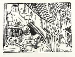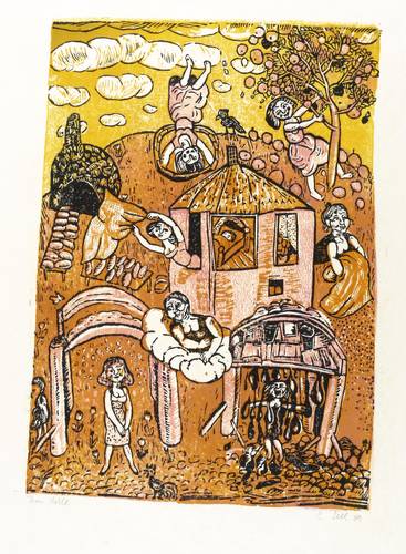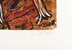 Lothar Sell (1939 Teuenbrietzen - 2009 Meißen). Deutscher Grafiker, Illustrator und Keramiker. 1957-63 Studium an der Hochschule für Bildende Künste Dresden (HfBK), bei Hans Theo Richter und Max Schwimmer. 1966-69 Meisterschüler an der Akademie der Künste Berlin (AdK). 1974-88 Lehrauftrag an der Burg Giebichenstein Hochschule für Kunst und Design in Halle. Mitglied im Verband Bildender Künstler der DDR. Seine Grafiken und Plastiken sind oft geprägt von einem humorigen "bäuerlichen" Charakter. Stilistisch dominiert deshalb eine oft derbe, zumeist auch naive Anmutung. 1976 Illustrationen zu Erwin Strittmatters "Ochsenkutscher". Die Leibesfülle, typisch für Sells Darstellung des menschlichen Körpers, charakterisiert u.a. die Keramiken des Brunnen im Meißner Zollhof.