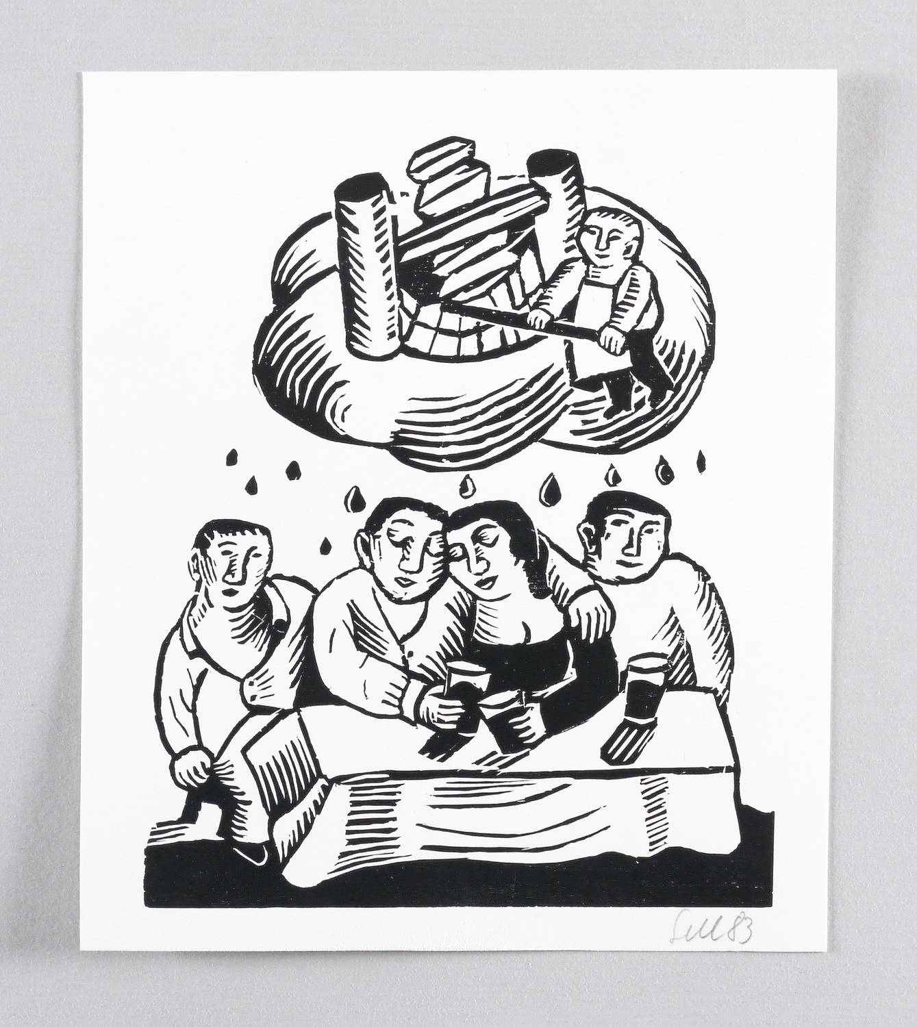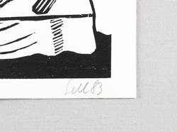 1983. Holzschnitt, in Schwarz, auf glattem weißem Velinkarton. – Originale Künstlergrafik, von Lothar Sell. – 17,4 x 14,2 cm (Darstellung / Druckbild), 20 x 17 cm (Blatt).