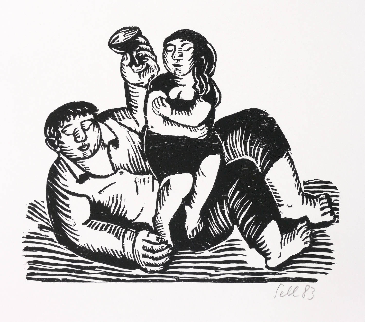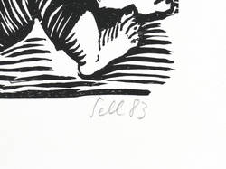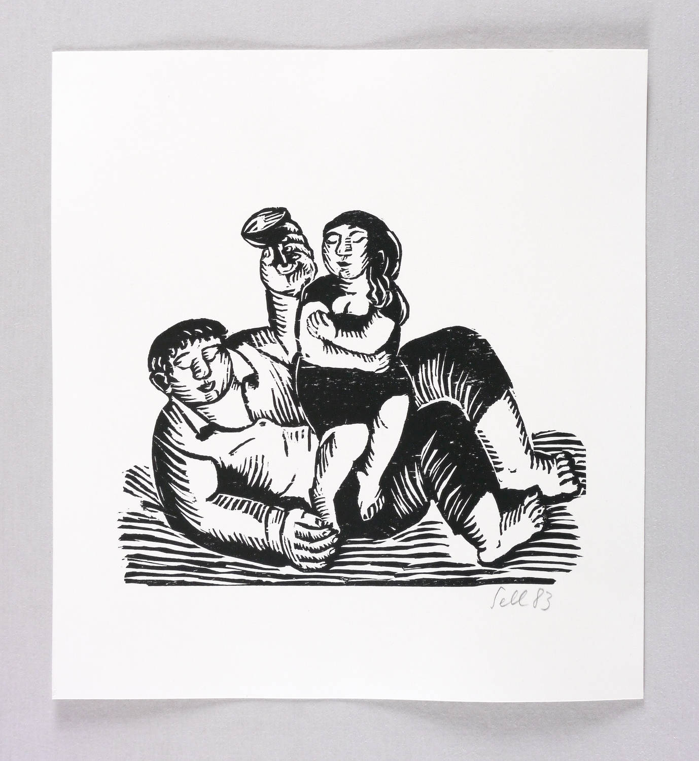 1983. Holzschnitt, in Schwarz, auf glattem weißem Velinkarton. – Originale Künstlergrafik, von Lothar Sell. – 14,0 x 17,5 cm (Darstellung / Druckbild), 24 x 22 cm (Blatt).