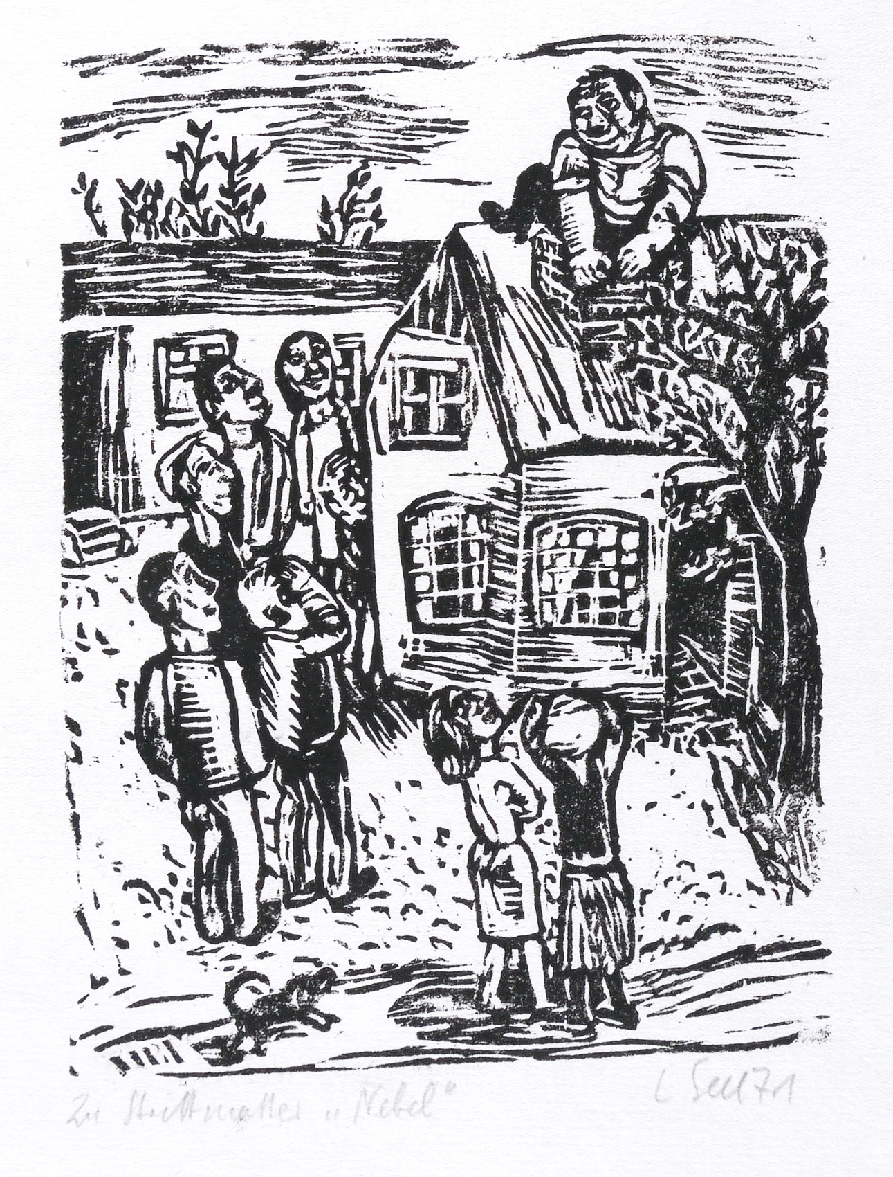 Links unten in Bleistift signiert und datiert: ″L Sell 71″. Links bezeichnet: ″Zu Strittmatter 'Nebel'″. – Sehr guter Zustand.