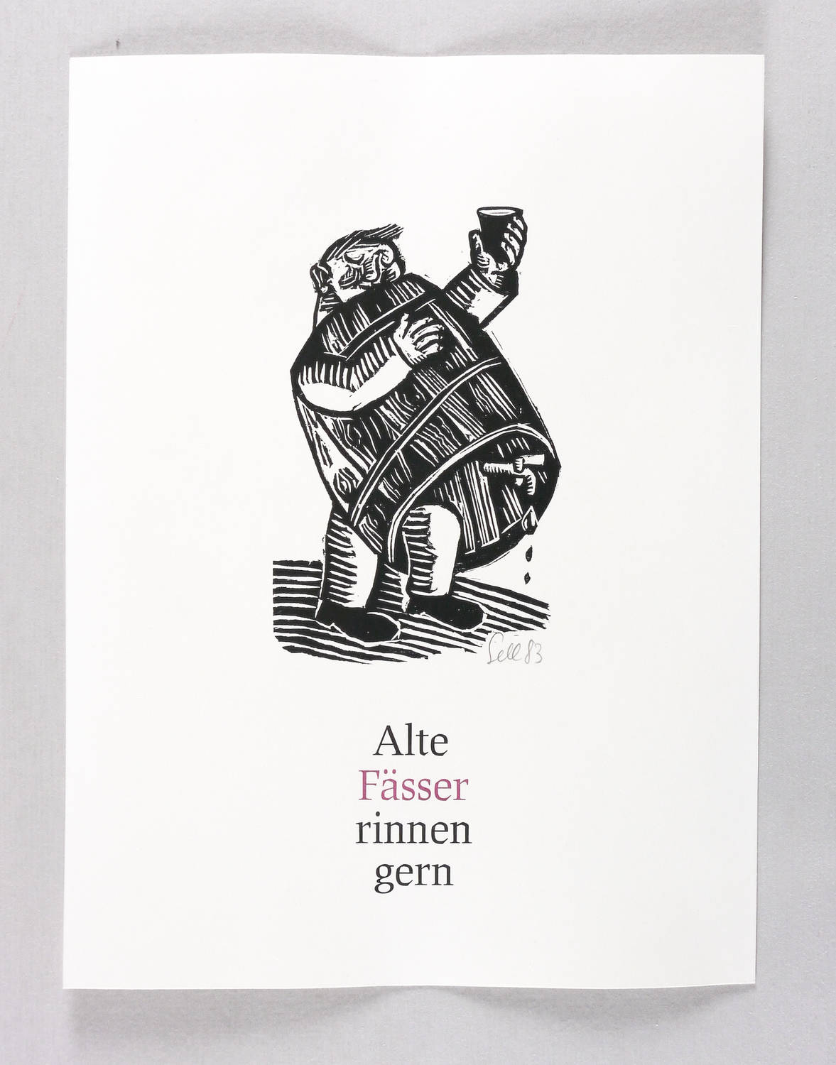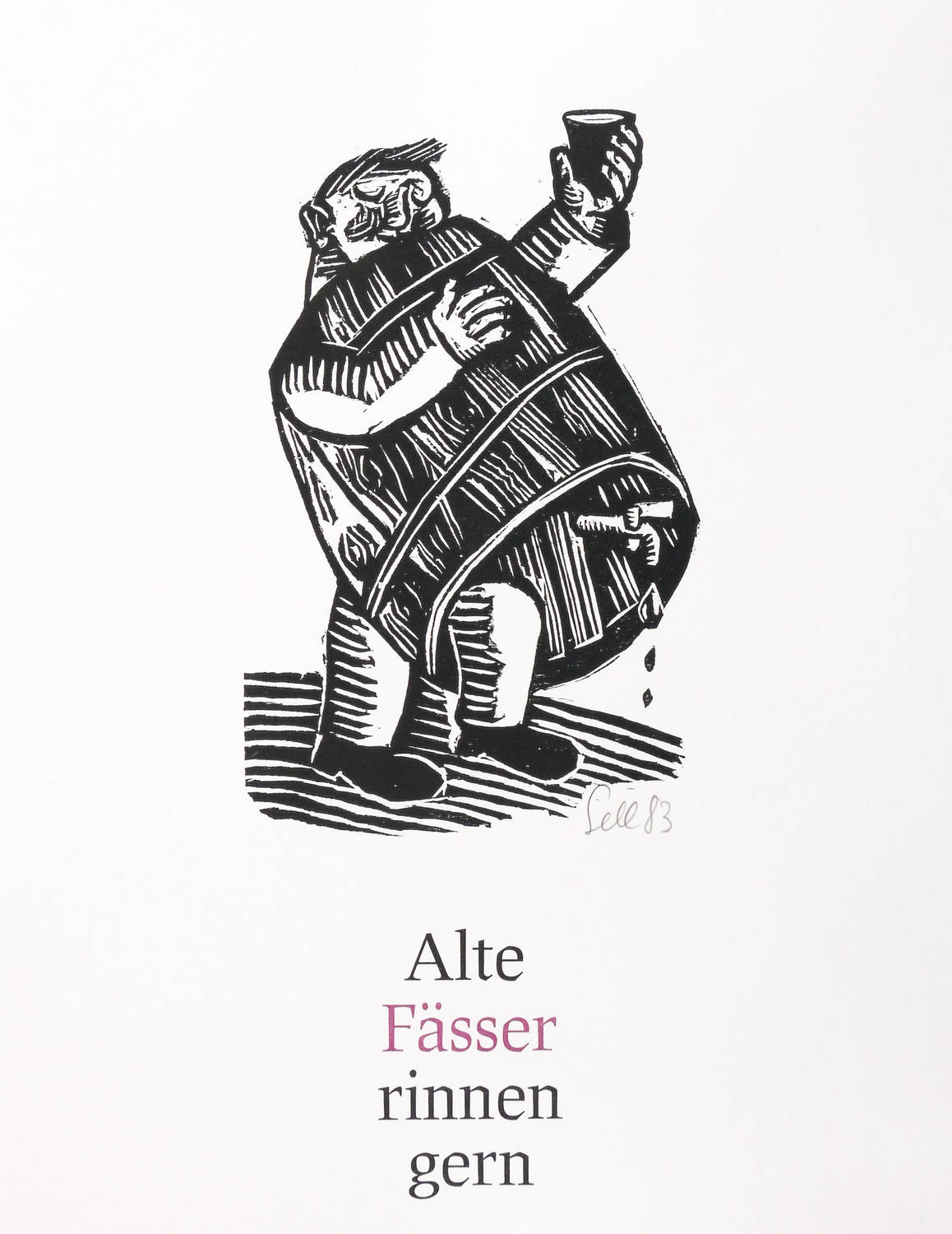 Rechts unten in Bleistift signiert und datiert: ″Sell 83″. Unterhalb typografische Inschrift: ″Alte Fässer rinnen gern″. – Sehr guter Zustand.