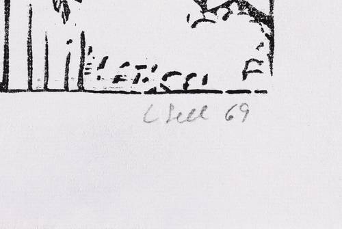 1969. Holzschnitt, in Schwarz, auf hellem Maschinenbütten. – Originale Künstlergrafik, von Lothar Sell. – 30,7 x 42,6 cm (Darstellung / Druckstock), 41 x 56 cm (Blatt).