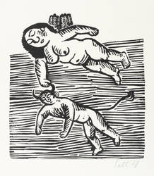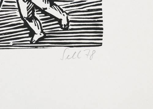 1978. Holzschnitt, in Schwarz, auf hellgelbem Velinkarton. – Originale Künstlergrafik, von Lothar Sell. – 14,9 x 13,8 cm (Darstellung), 32 x 24 cm (Blatt).