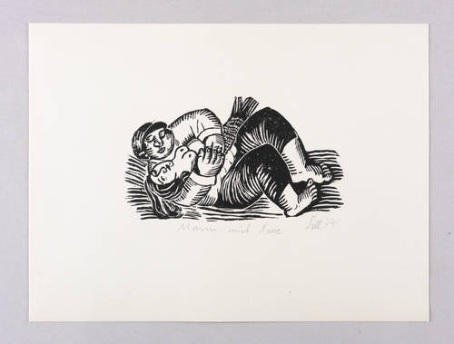 Rechts unten in Bleistift signiert und datiert: ″Sell 77″. Links Titel: ″Mann mit Nixe″. – Sehr guter Zustand.