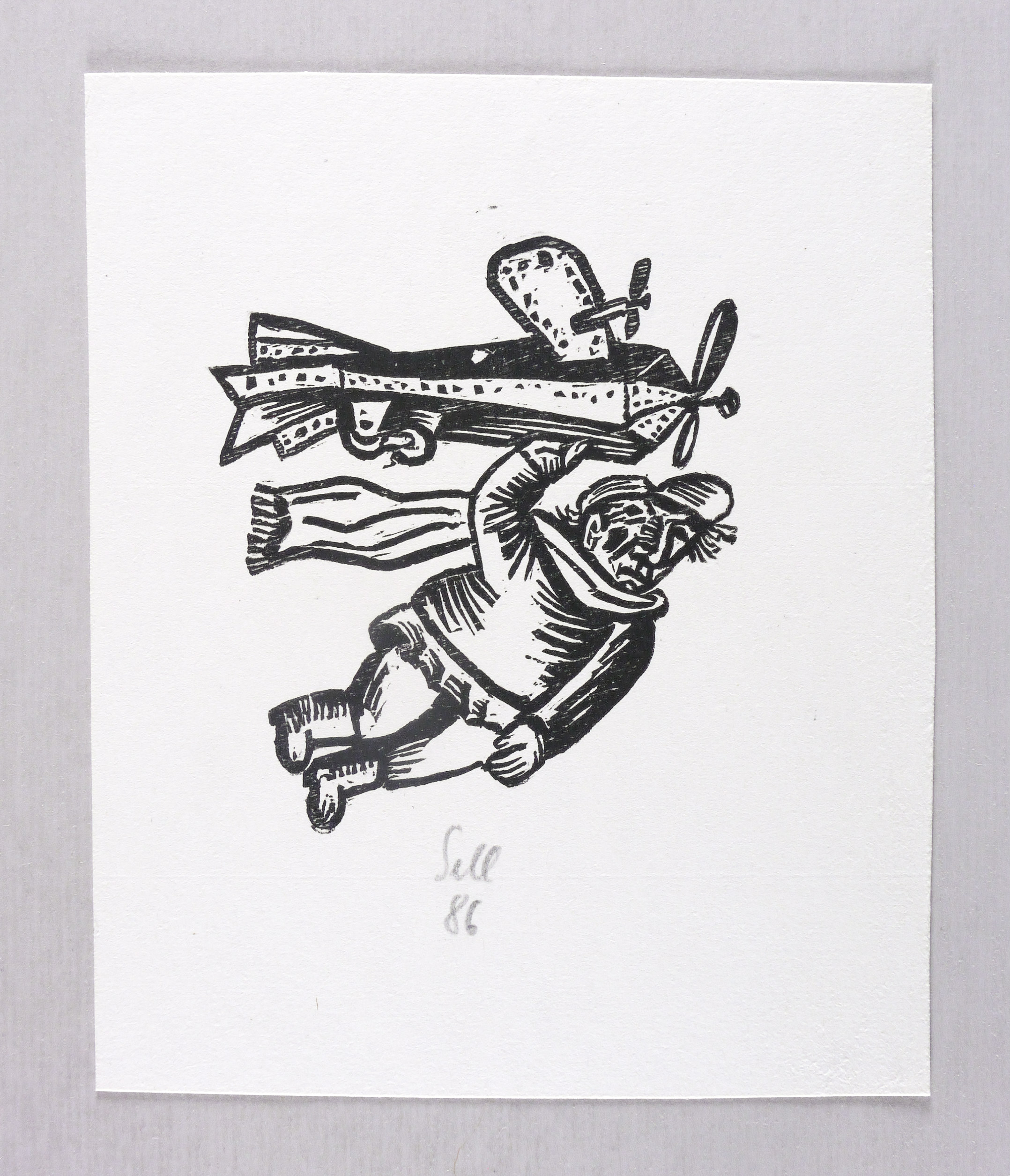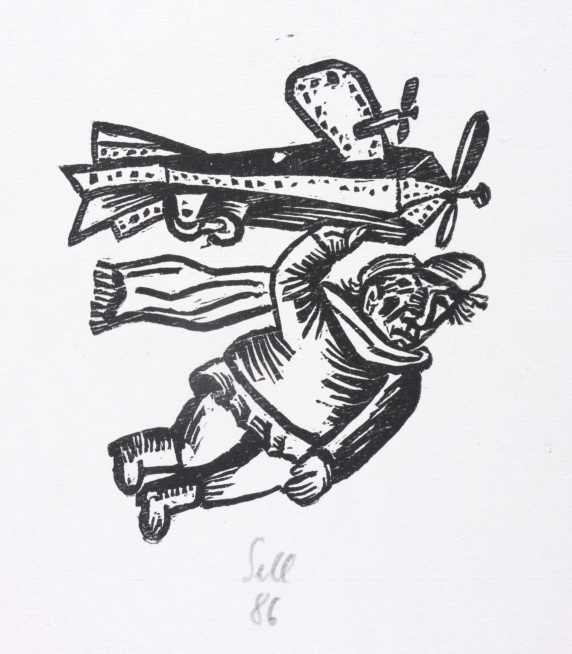 1986. Holzschnitt, in Schwarz, auf rauem weißlichem Bütten. – Originale Künstlergrafik, von Lothar Sell. – 11,2 x 10,0 cm (Darstellung / Druckbild), 19 x 16 cm (Blatt).
