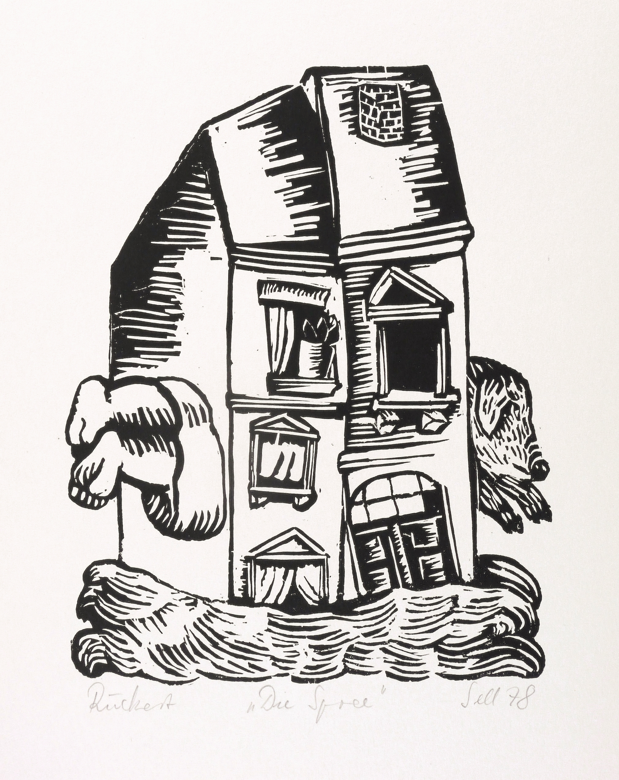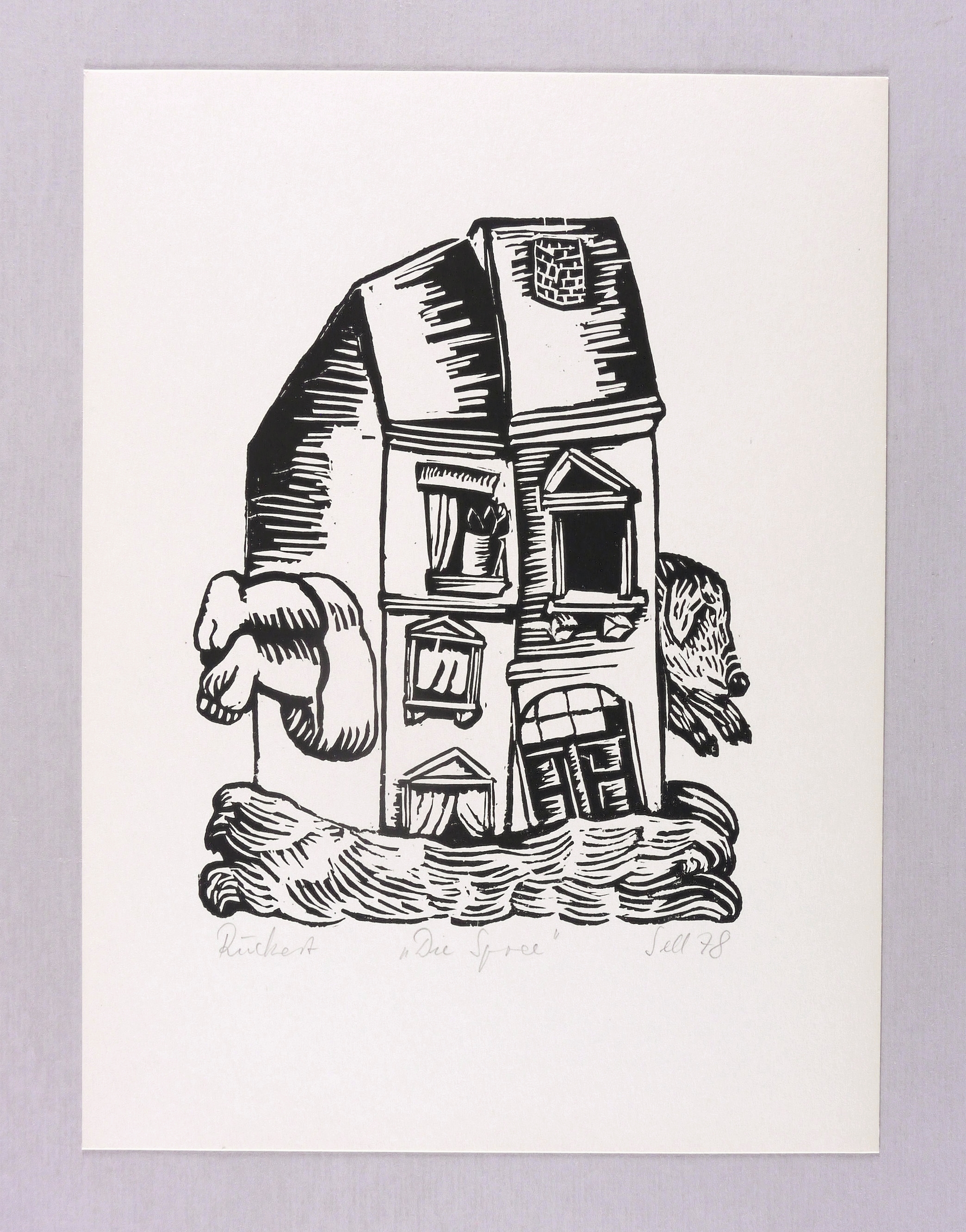 1978. Holzschnitt, in Schwarz, auf festem hellchamois Velinkarton. – Originale Künstlergrafik, von Lothar Sell. – 21,0 x 16,5 cm (Darstellung), 32 x 24 cm (Blatt).