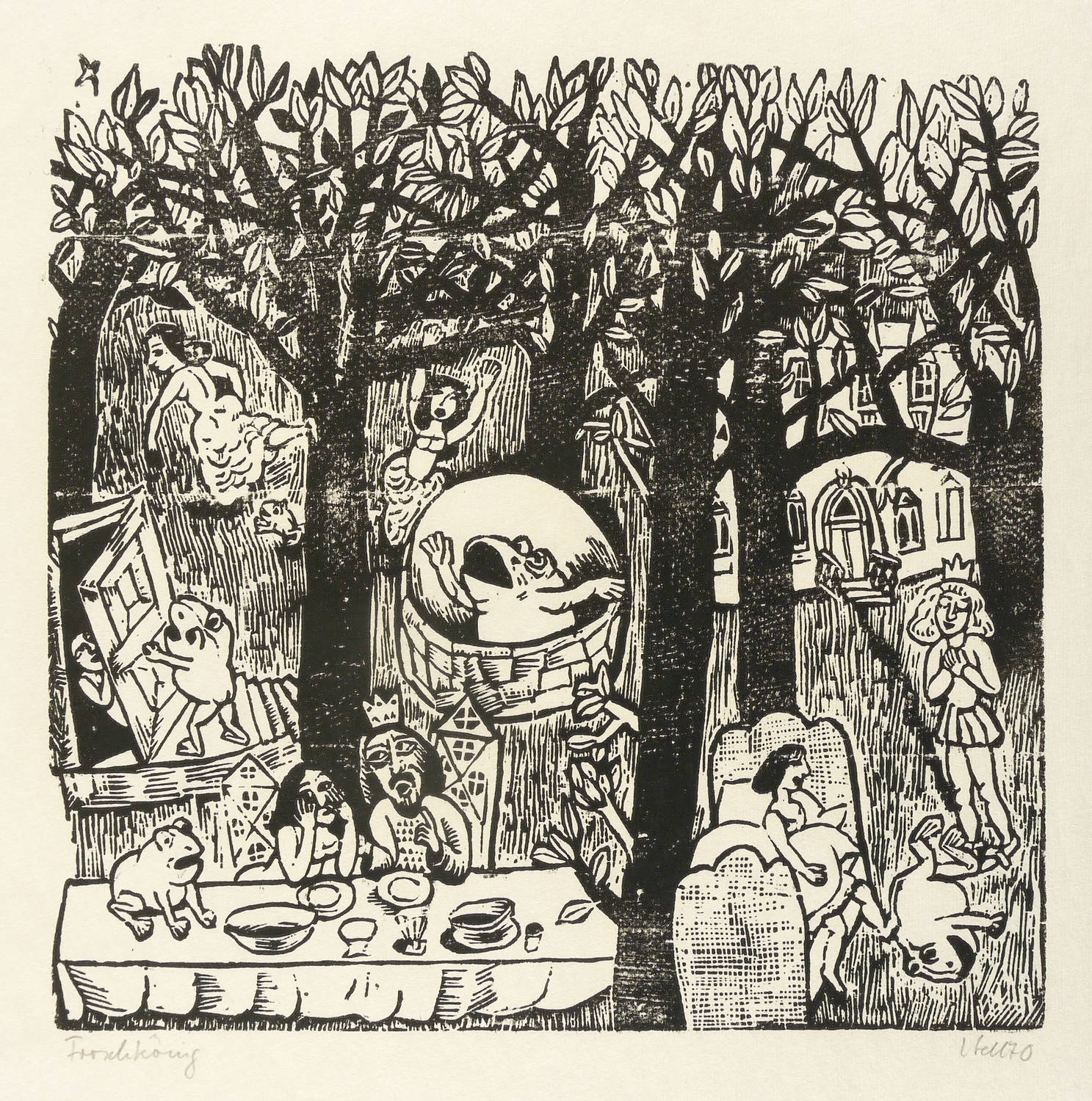 Rechts unten in Bleistift signiert und datiert: ″L. Sell 70″. Links Titel: ″Froschkönig″. – Sehr guter Zustand.