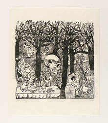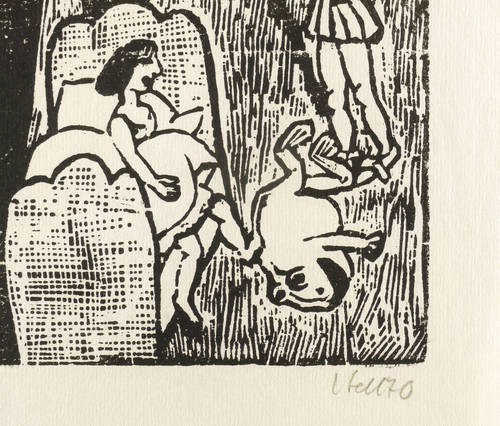 1970. Holzschnitt, in Schwarz, auf rauem weißem Japan-Imitat. – Originale Künstlergrafik, von Lothar Sell. – 30,0 x 30,4 cm (Darstellung / Druckstock), 42 x 35 cm (Blatt).
