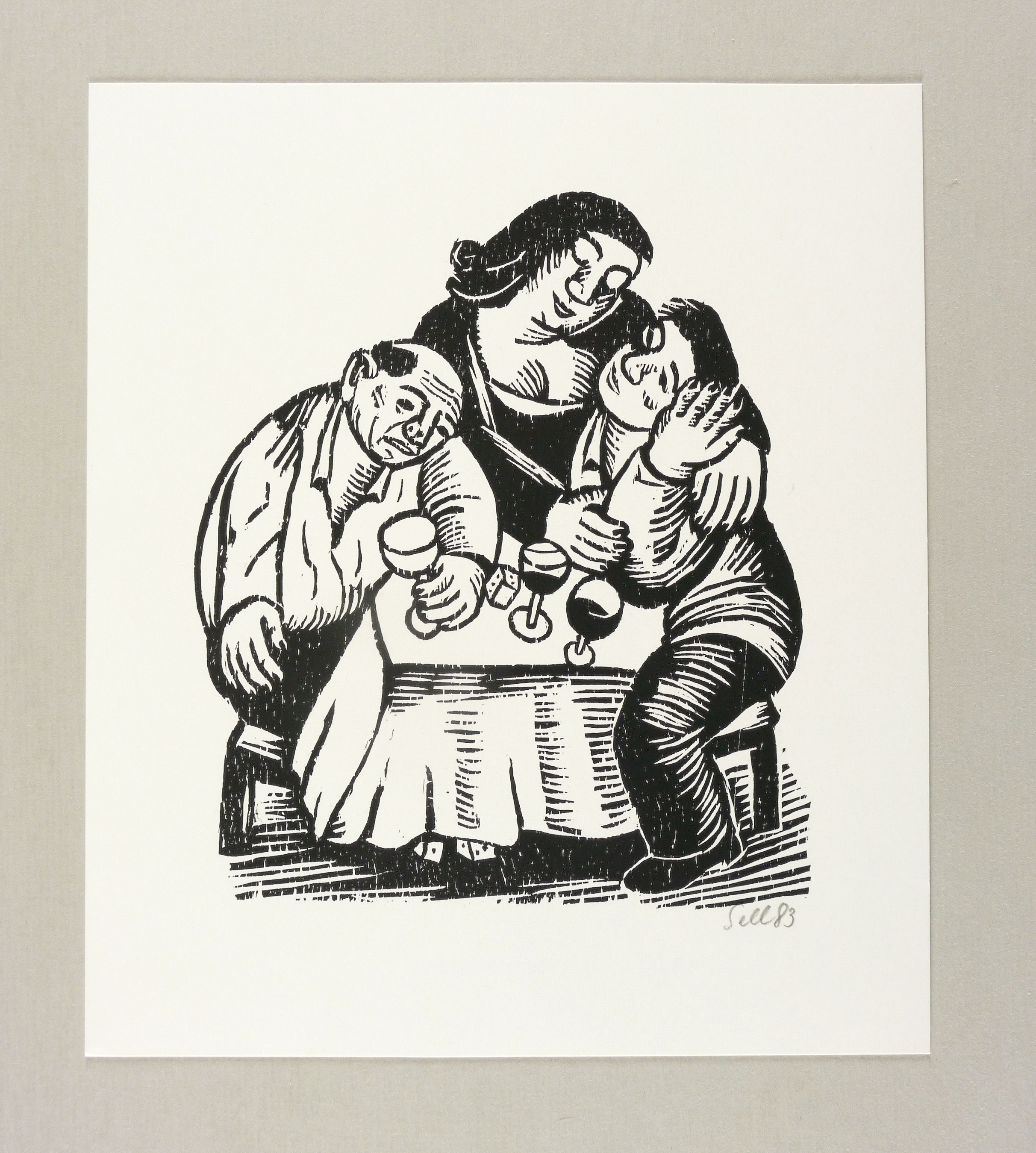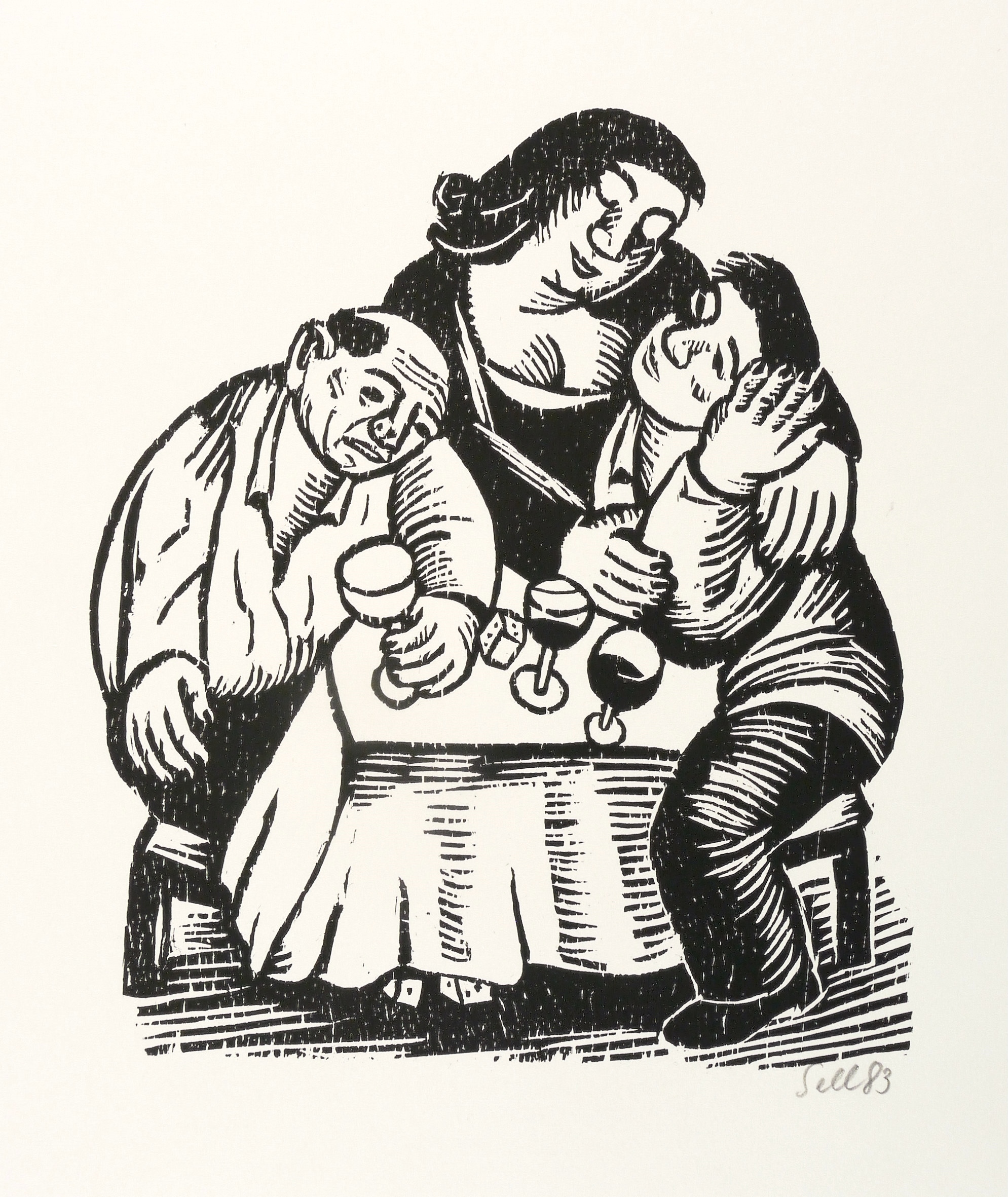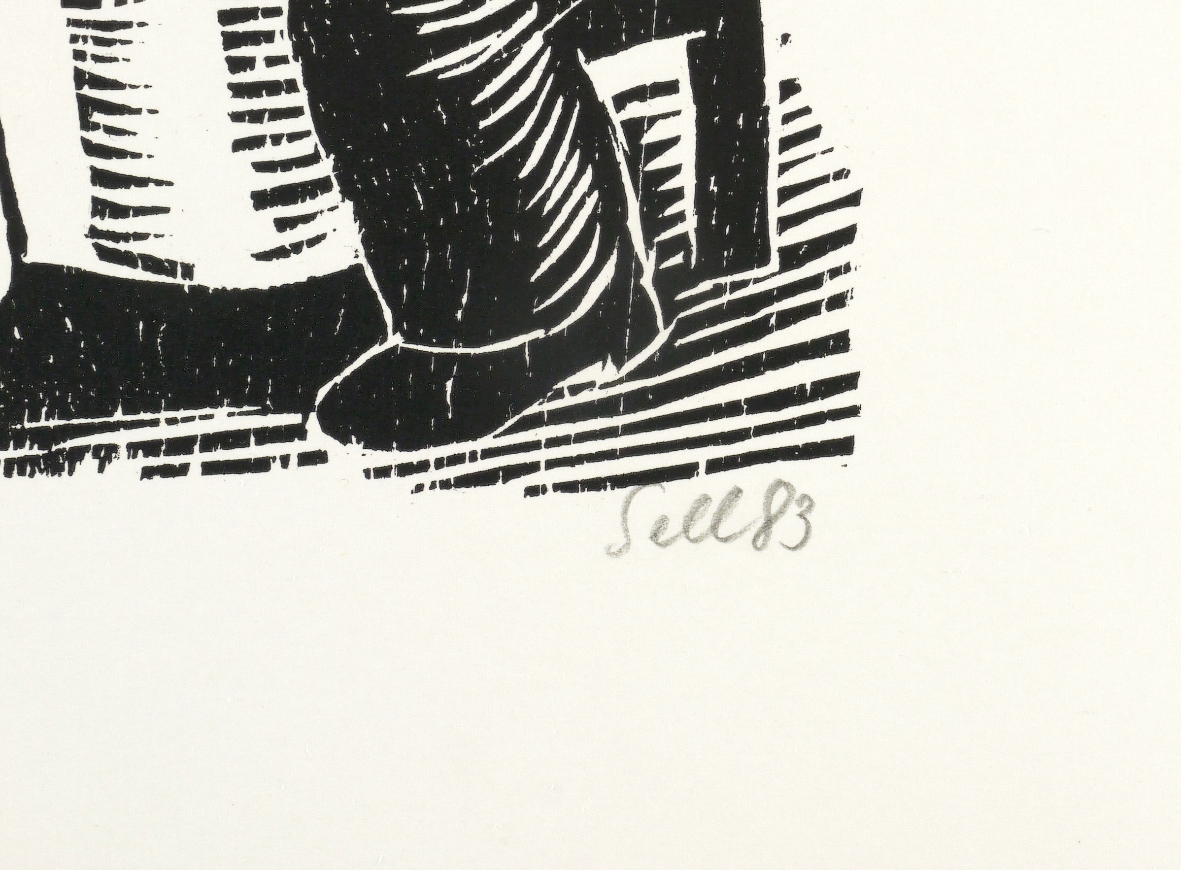 1983. Holzschnitt, in Schwarz, auf glattem weißem Velinkarton. – Originale Künstlergrafik, von Lothar Sell. – 19,1 x 16,3 cm (Darstellung / Druckbild), 26 x 22 cm (Blatt).