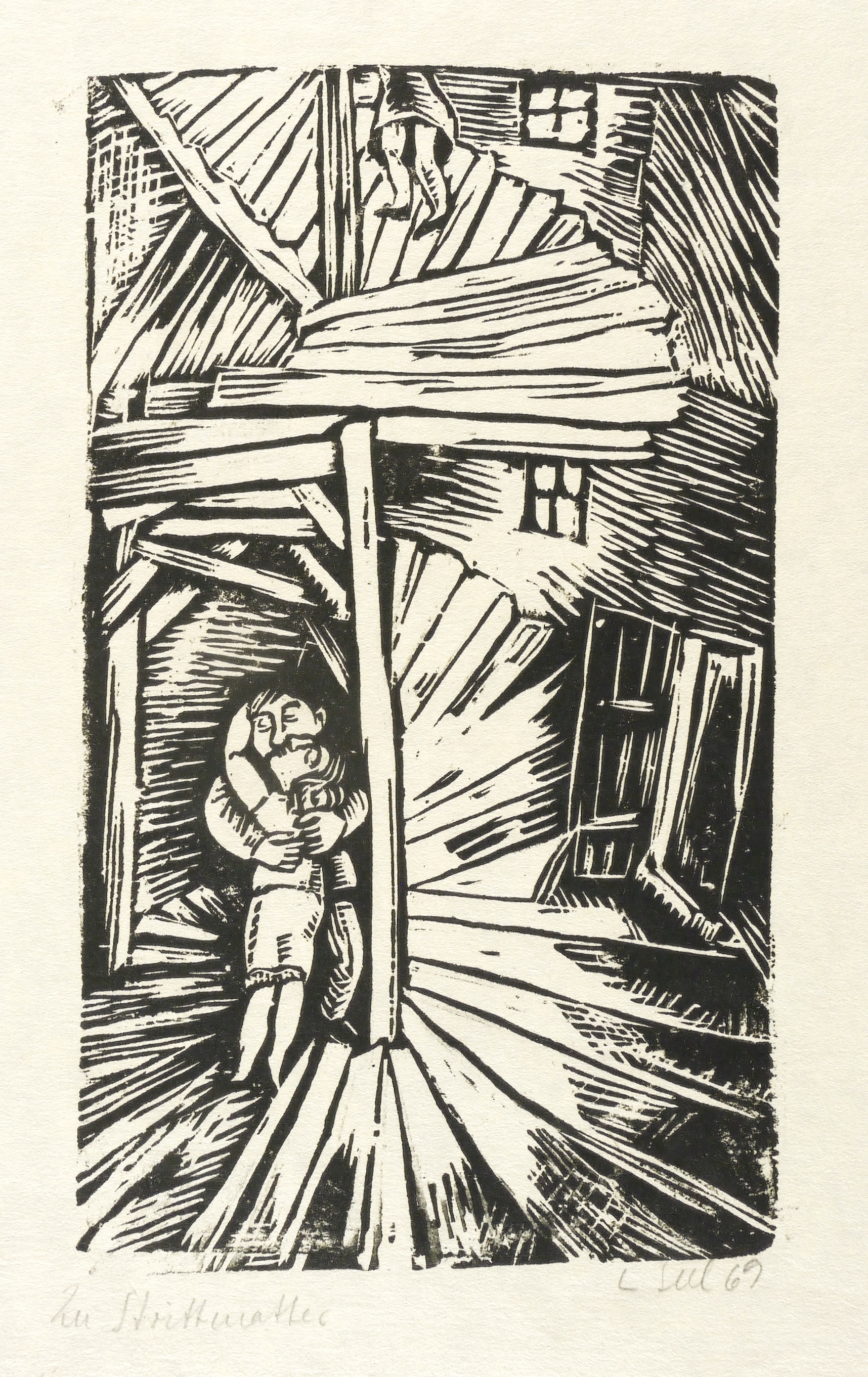 Rechts unten in Bleistift signiert und datiert: ″L. Sell 69″. Links bezeichnet: ″Zu Strittmatter″. – Kleiner Fleck im linken Papierrand, unter Passepartout abdeckbar. Mäßig guter Zustand.