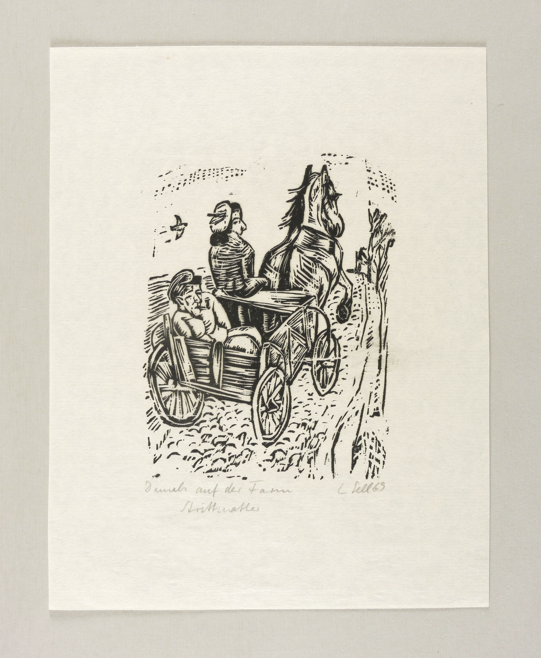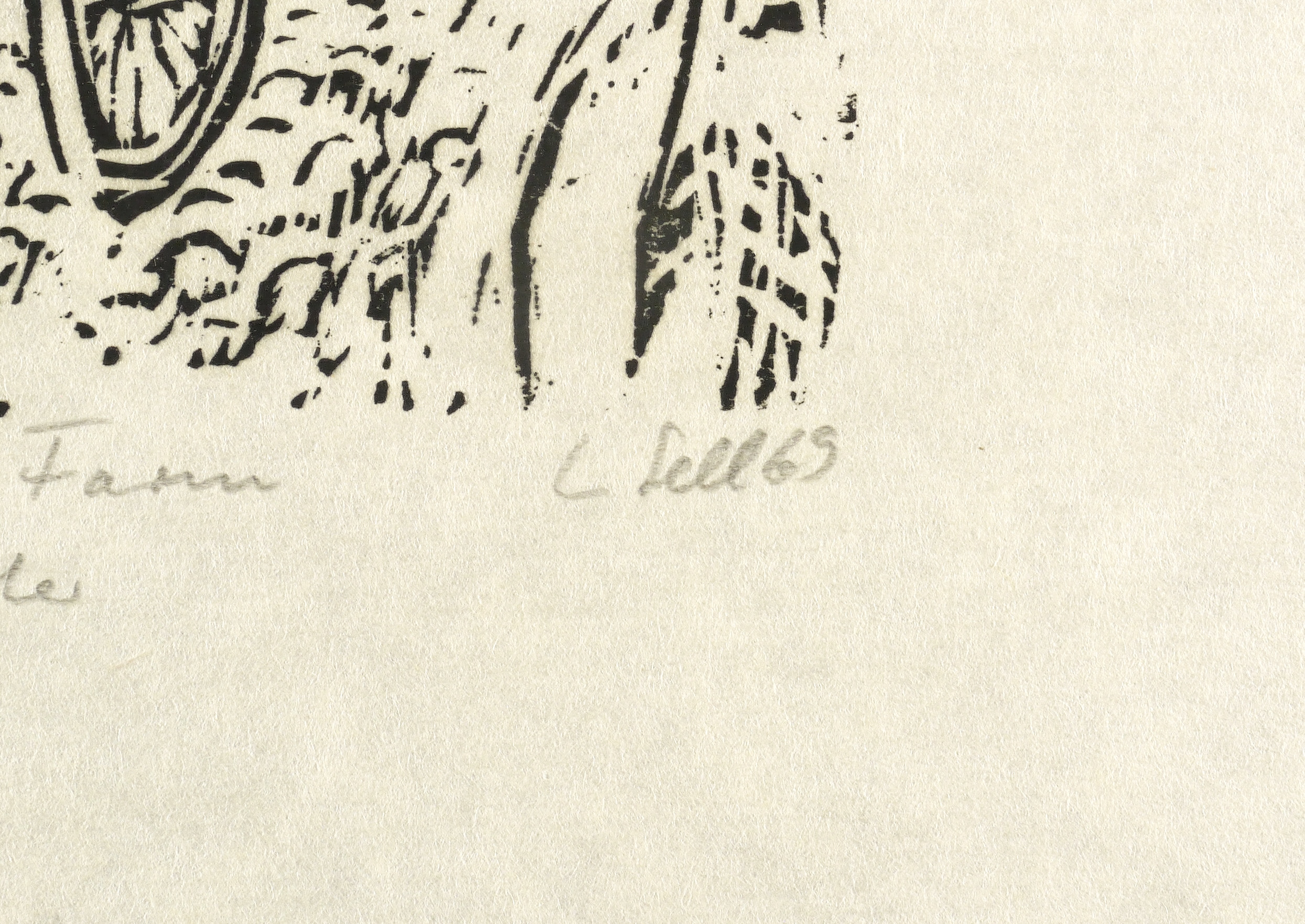 Rechts unten in Bleistift signiert und datiert: ″L. Sell 69″. Links bezeichnet: ″Damlas auf der Farm / Strittmatter″. – Sehr guter Zustand.