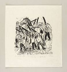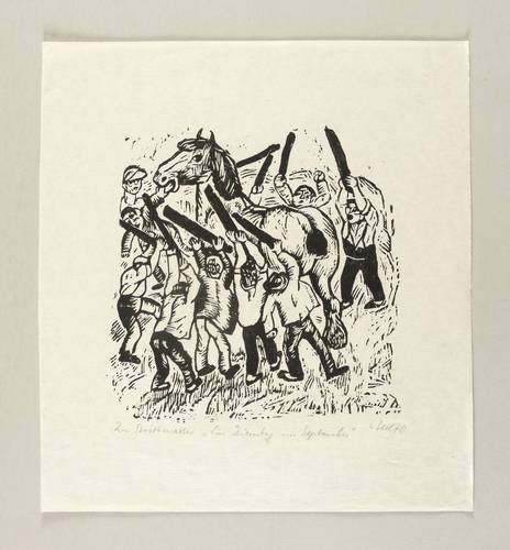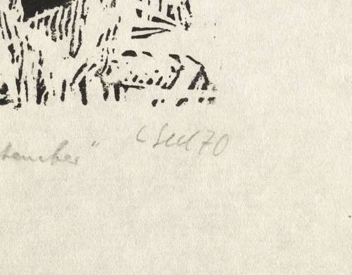 1970. Holzschnitt, in Schwarz, auf rauem hellchamois Similijapan. – Originale Künstlergrafik, von Lothar Sell. – 17,2 x 17,3 cm (Darstellung / Druckstock), 29 x 26 cm (Blatt).
