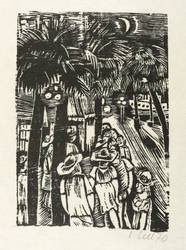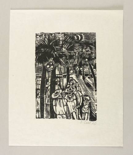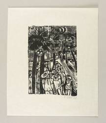 1970. Holzschnitt, in Schwarz, auf leichtem gelblichem Similijapan. – Originale Künstlergrafik, von Lothar Sell. – 18,6 x 12,9 cm (Darstellung / Druckbild), 29 x 25 cm (Blatt).