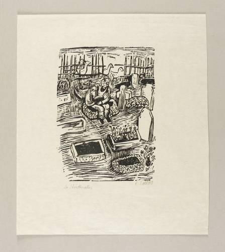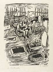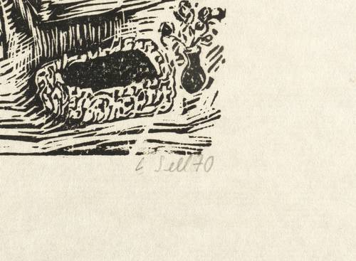 1970. Holzschnitt, in Schwarz, auf leichtem gelblichem Velin. – Originale Künstlergrafik, von Lothar Sell. – 17,4 x 12,5 cm (Darstellung / Druckbild), 29 x 25 cm (Blatt).