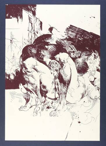 Aus: Willi Sitte, P. Ovidi Nasonis Ars amatoria. Die Liebeskunst (Berlin: Akademie-Verlag 1970). – Verso in Bleistift bezeichnet. – Originale Lithografie zur Folge der Ars amatoria. – Sehr guter Zustand.