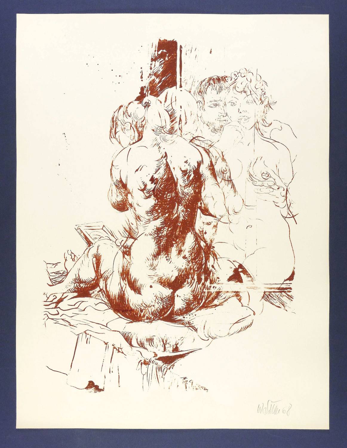 1968. Lithografie / Pinsellithografie, in Braun, auf hellgelbem Karton. – Originale Künstlergrafik, von Willi Sitte. – 63,4 x 45,9 cm (Darstellung / Druckbild), 74 x 56 cm (Blatt).