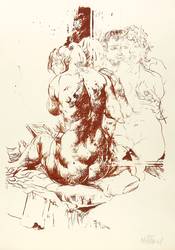 Sitte, Willi - Ars amatoria - Ars amatoria - Sitzender Rückenakt und Liebespaar
