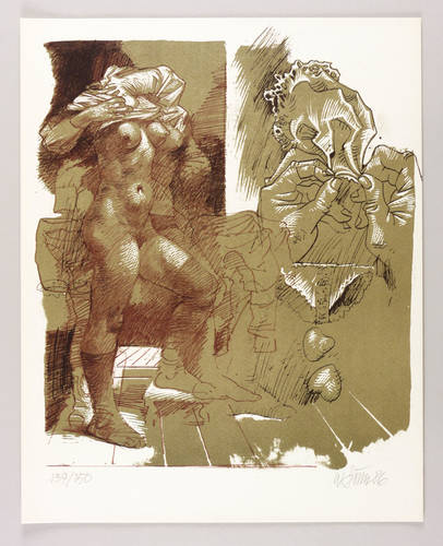 1986. Farblithografie / Kreidelithografie, in Olivgrün, Rot- & Schwarzbraun, auf Weißenborn-Bütten. – Originale Künstlergrafik, von Willi Sitte. – Auflage Exemplar Nr. 139/150. – 44,1 x 38,5 cm (Darstellung / Druckbild), 50 x 40 cm (Blatt).