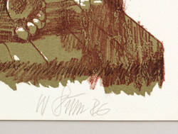 1986. Farblithografie / Kreidelithografie, in Olivgrün, Rot- & Schwarzbraun, auf Weißenborn-Bütten. – Originale Künstlergrafik, von Willi Sitte. – Auflage Exemplar Nr. 139/150. – 46,9 x 34,9 cm (Darstellung / Druckbild), 50 x 40 cm (Blatt).