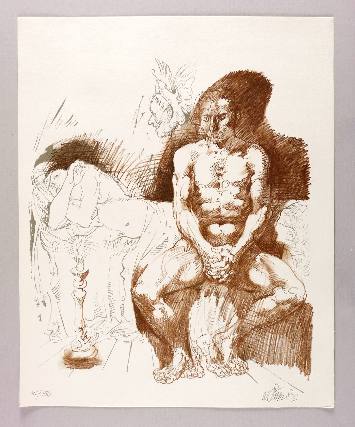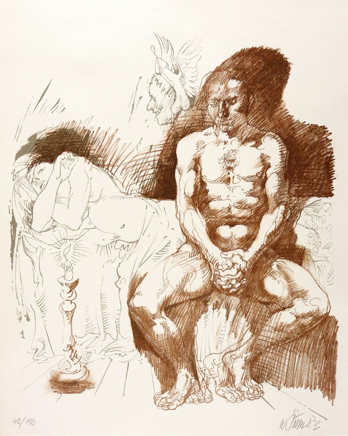 1983. Farblithografie / Kreidelithografie, in Rotbraun & Grau, auf hellchamois Maschinenbütten. – Originale Künstlergrafik, von Willi Sitte. – Auflage Exemplar Nr. 42/150. – 42,7 x 36,4 cm (Darstellung), 50 x 41 cm (Blatt).