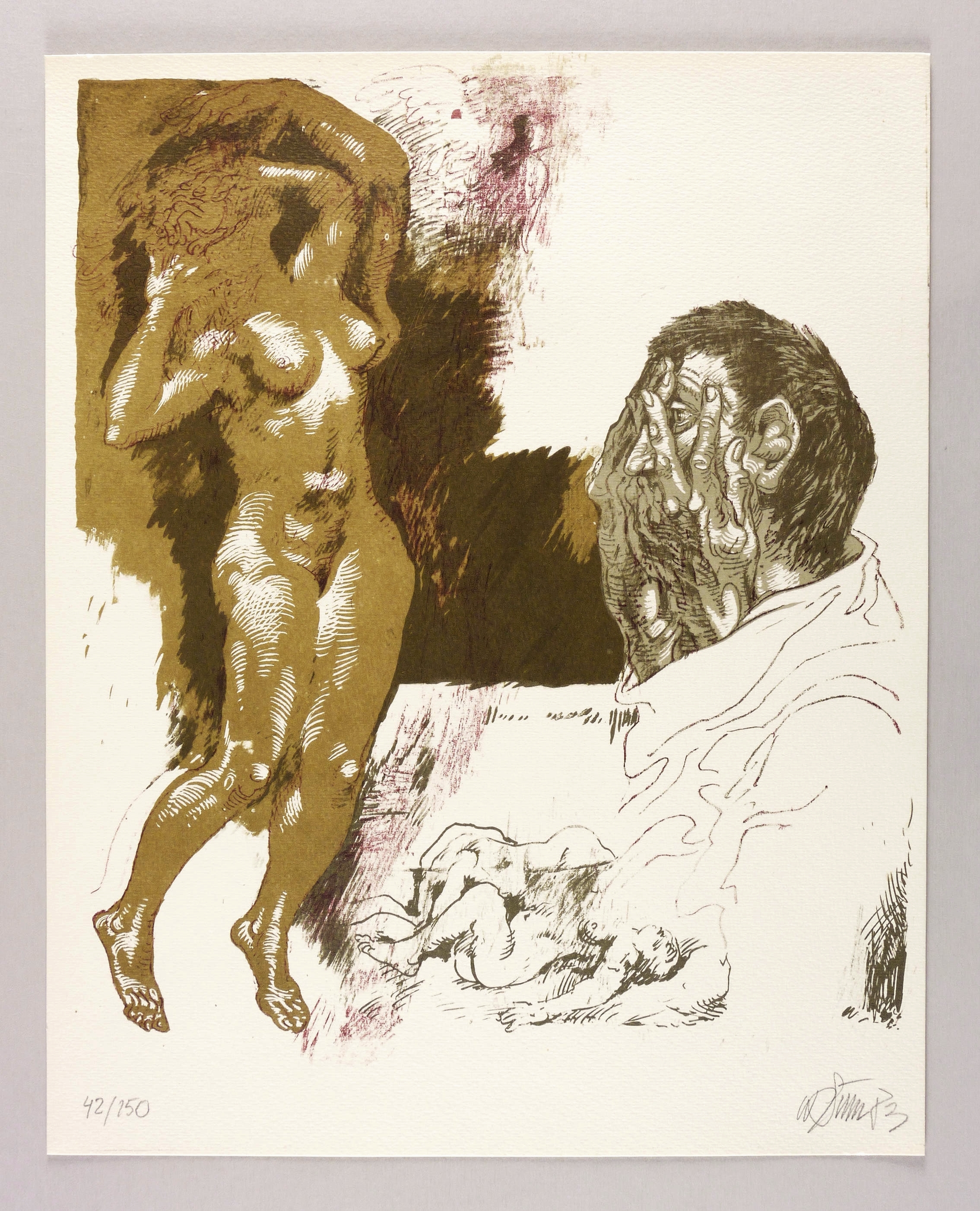 1983. Farblithografie / Kreidelithografie, in Olivgrün, Hellgrün, Grau & Rotbraun, auf Maschinenbütten. – Originale Künstlergrafik, von Willi Sitte. – Auflage Exemplar Nr. 42/150. – 45,6 x 38,4 cm (Darstellung / Druckbild), 50 x 40 cm (Blatt).