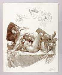 Aus: Willi Sitte, O Liebe, wie machst du der Freuden so viel! Sechs Lithografien zum Hochzeitsscherz von Johann Christian Günther. Grafik-Edition XVII (Leipzig: Reclam 1984). – Rechts unten in Bleistift signiert und datiert: ″W. Sitte 83″. Links Auflagenbezeichnung. – Sehr schön erhaltenes Exemplar. Tadelloser Zustand.