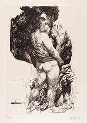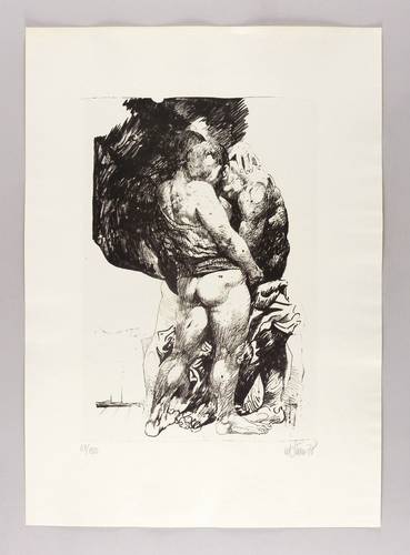 1978. Lithografie / Pinsel- und Kreidelithografie, in Schwarz, auf hellchamois Weißenborn. – Originale Künstlergrafik, von Willi Sitte. – Auflage Exemplar Nr. 61/150. – 47,9 x 29,8 cm (Darstellung / Stein), 70 x 50 cm (Blatt).