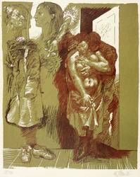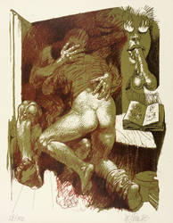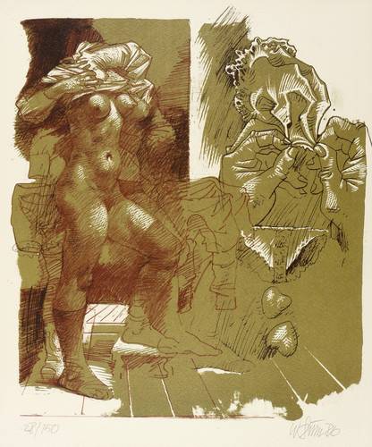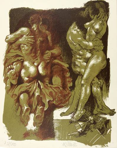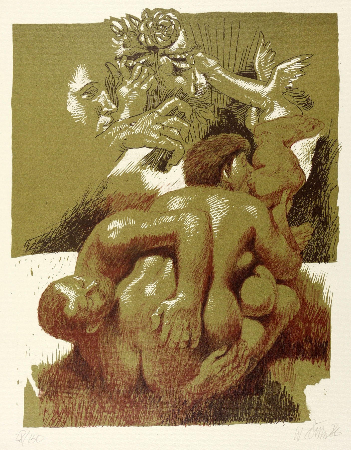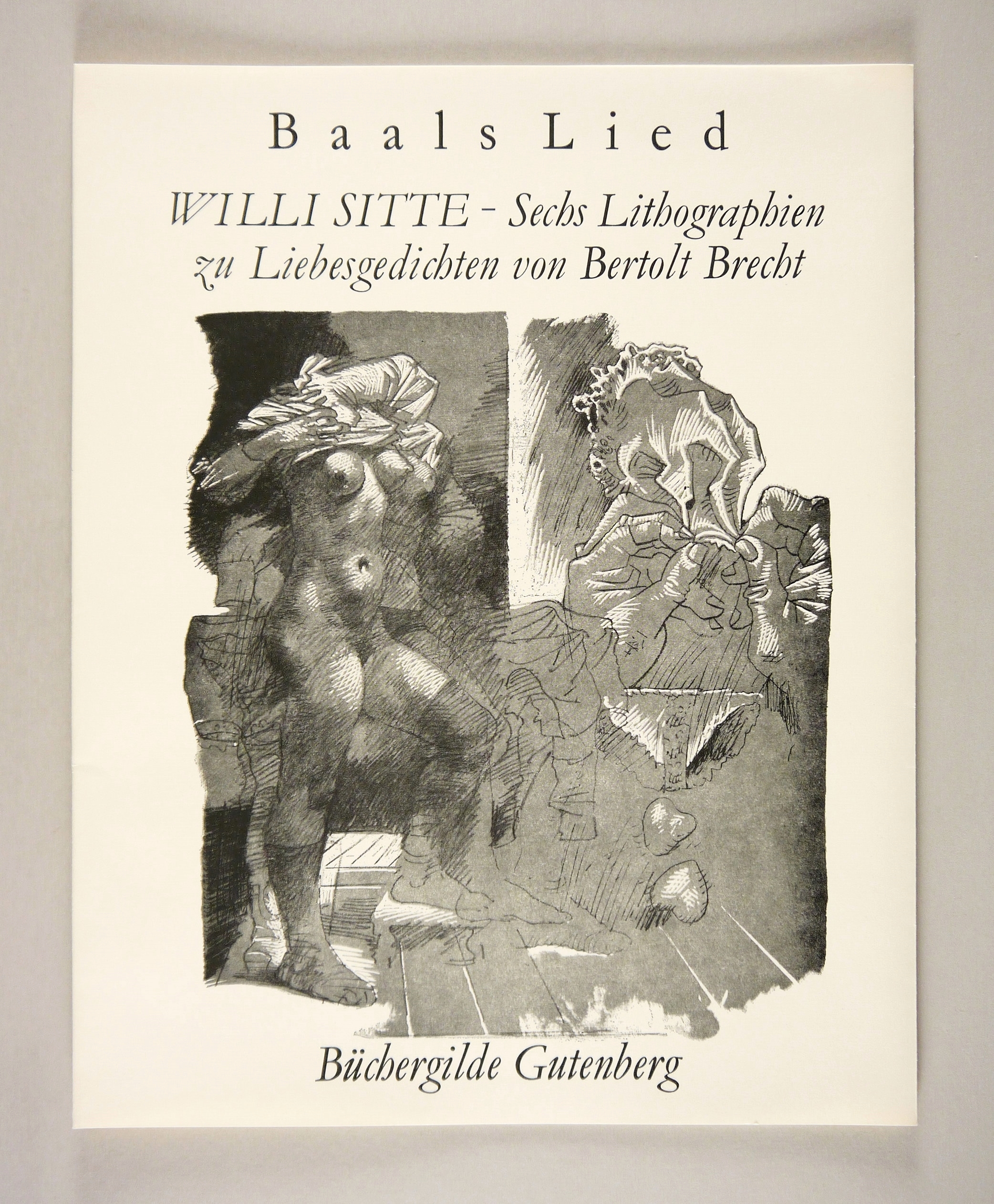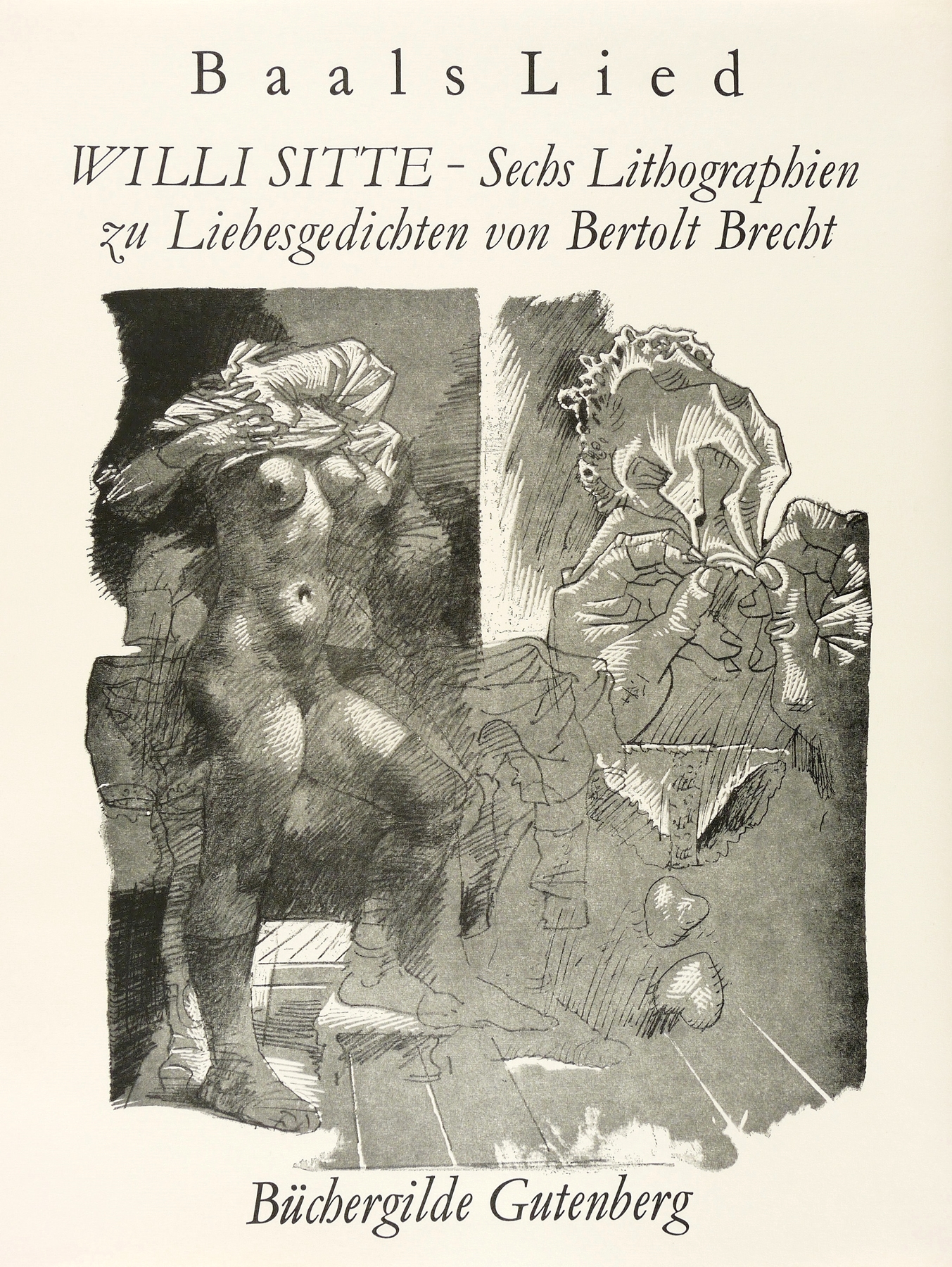 Aus: Willi Sitte, Baals Lied. Willi Sitte Sechs Lithografien zu Liebesgedichten von Bertolt Brecht. Grafik-Edition XXIII (Leipzig: Reclam 1986). – Die einzelnen Lithografien alle rechts unten signiert und datiert. Dazu jeweils links eigenhändige Auflagenbezeichnung: ″28/150″. – Vollständiges originalgrafisches Mappenwerk aus der Auflage für den Reclam-Verlag in Leipzig mit 6 handsignierten Farblithografien von Willi Sitte. – Druck der Lithografien von Gerhard Günther, Halle. – Schönes Exemplar. Vollständig und tadellos, mit alle Grafiken, Textblättern, Impressum, Umschlag und Schuber. Sehr guter Zustand.