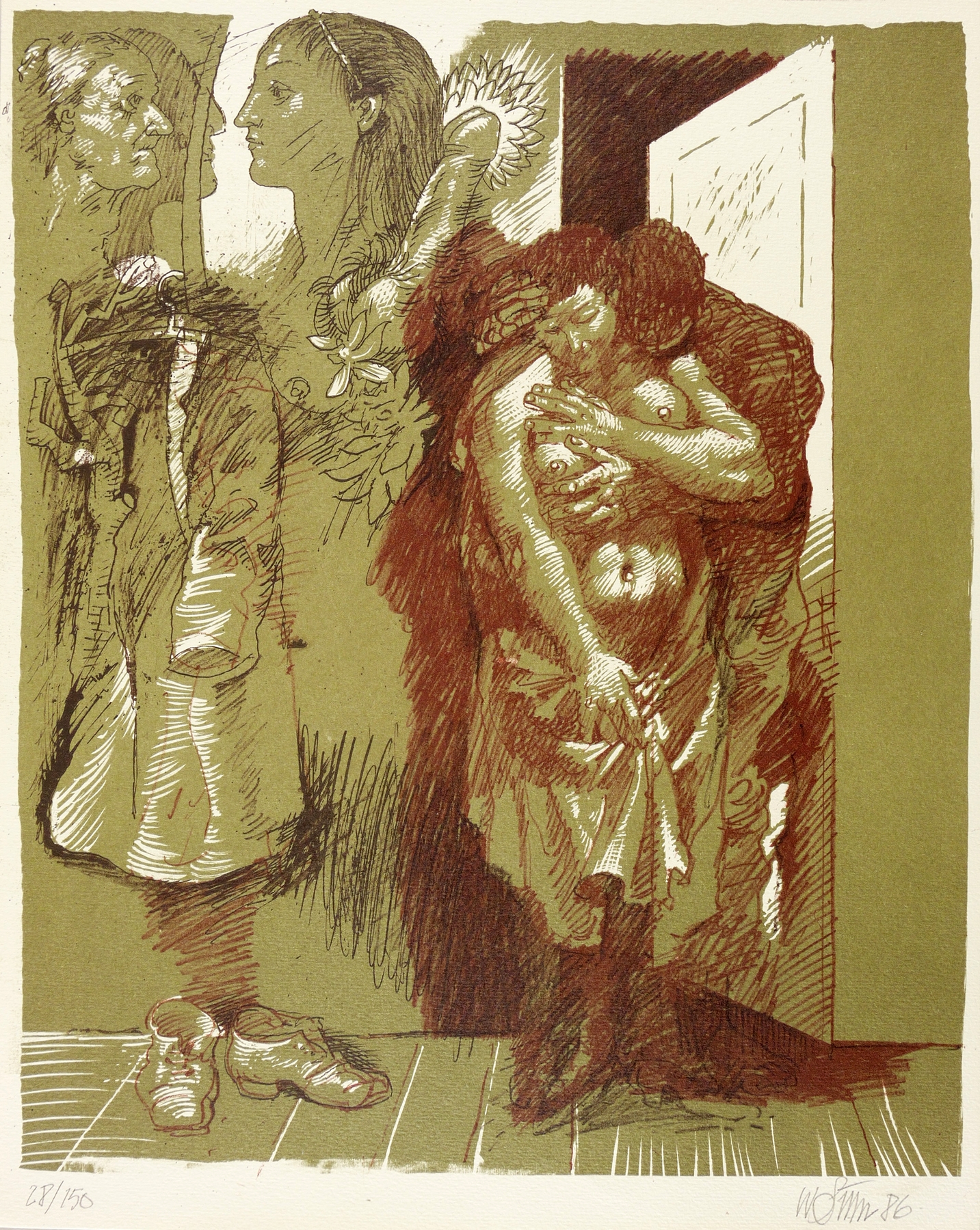 1986. Farblithografie / Kreidelithografie, 6 Blatt, auf hellchamois Weißenborn. – Originale Künstlergrafik, von Willi Sitte. – Auflage Exemplar Nr. 28/150. – 50,0 x 39,8 cm (Blätter), 51,4 x 40,7 cm (Umschlag), 52 x 41 cm (Schuber).