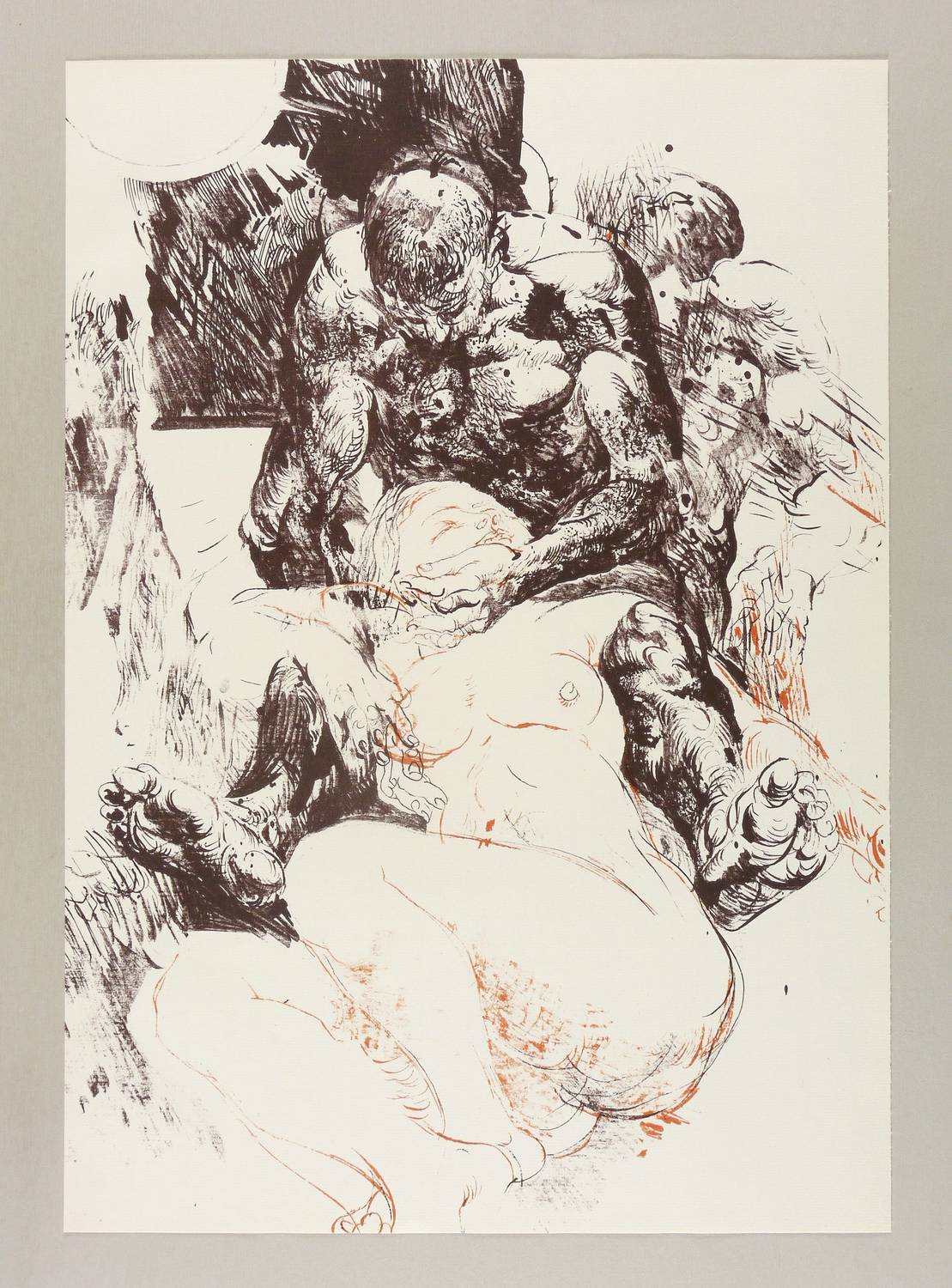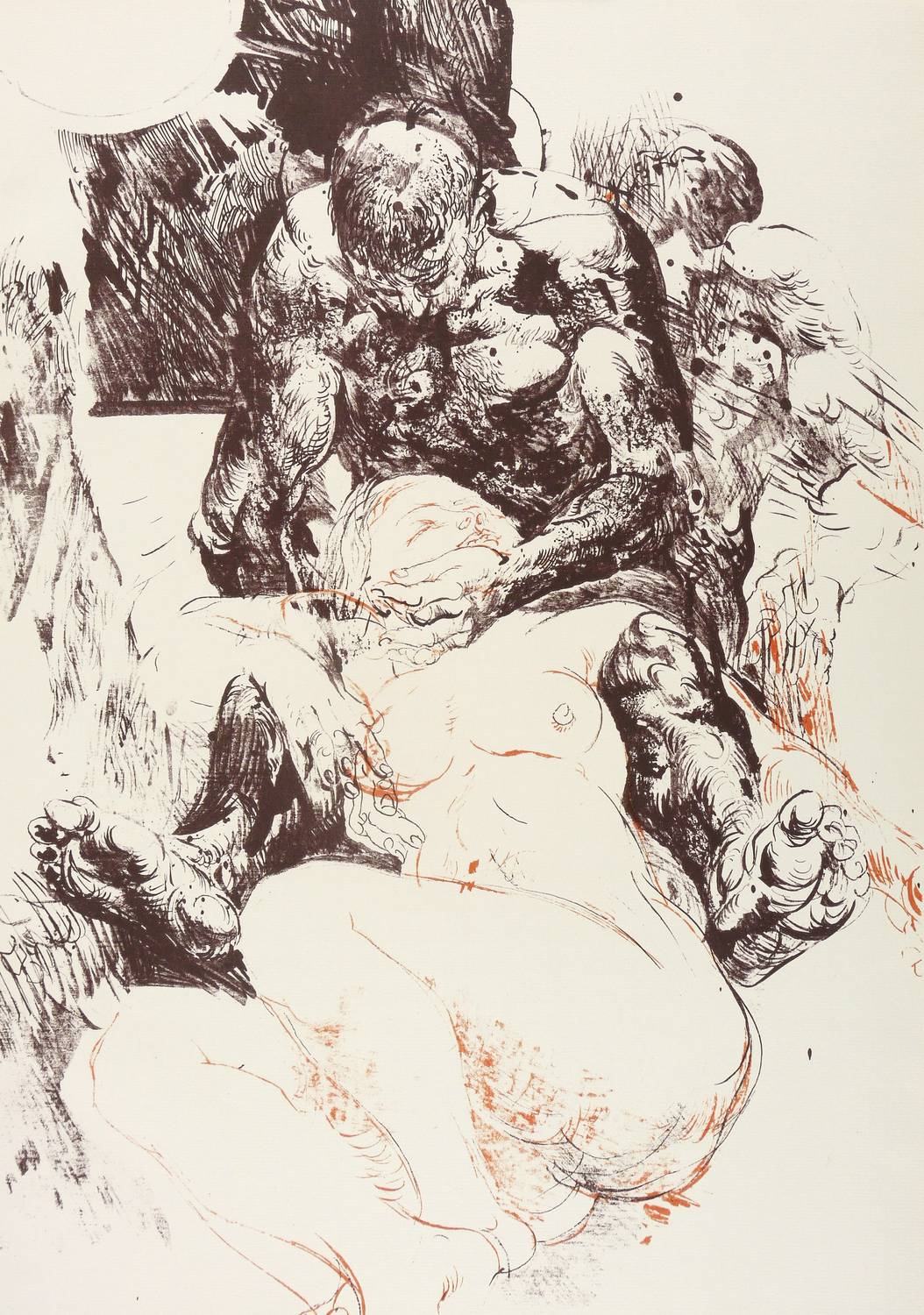 1970. Originaloffset / Feder & Pinsel, in Orange & Schwarzbraun. – Originale Künstlergrafik, von Willi Sitte. – Auflage 600 Exemplare. – 60 x 42 cm (Darstellung / Blatt).