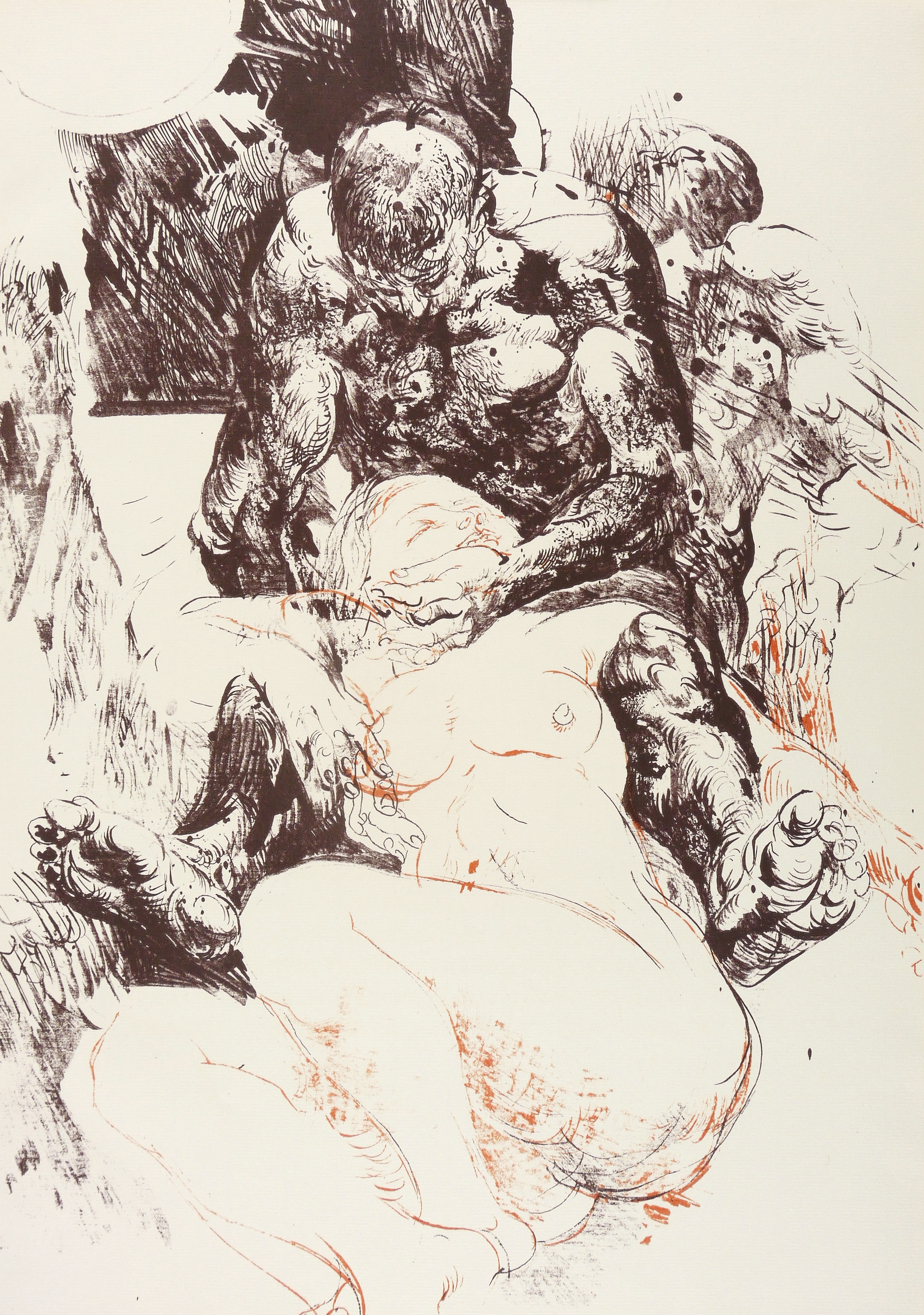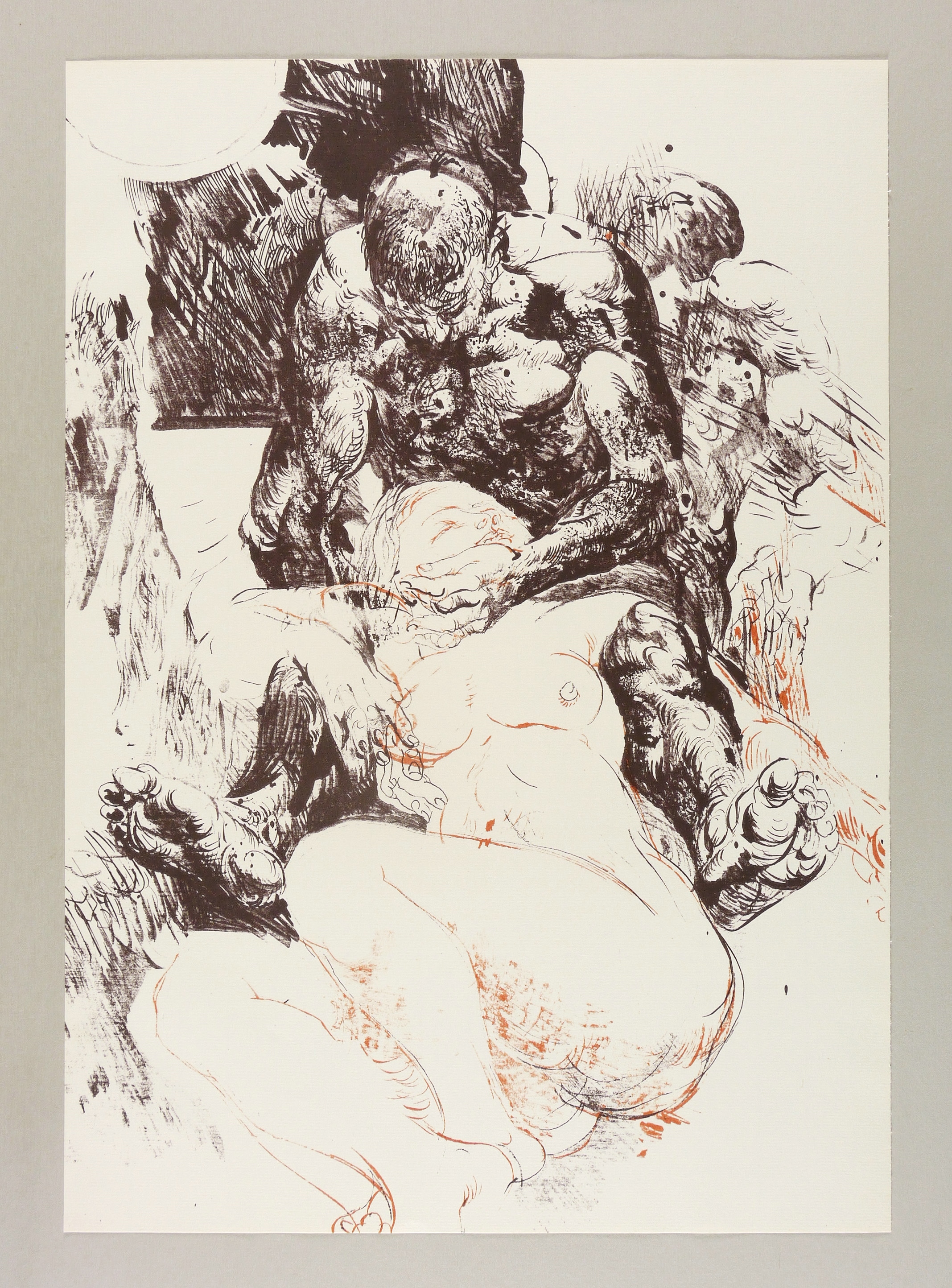 Aus: Willi Sitte, P. Ovidi Nasonis Ars amatoria. Die Liebeskunst (Berlin: Akademie-Verlag 1970). – Nicht näher bezeichnet. – Originaloffset zur Folge der Ars amatoria (Ovid). – Guter Zustand.