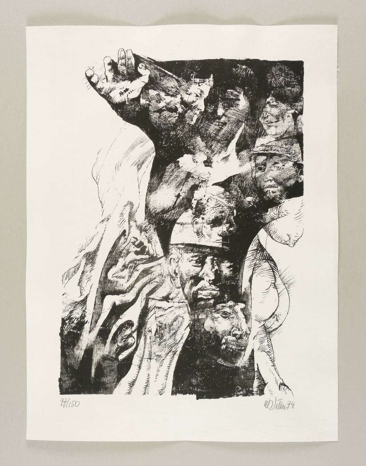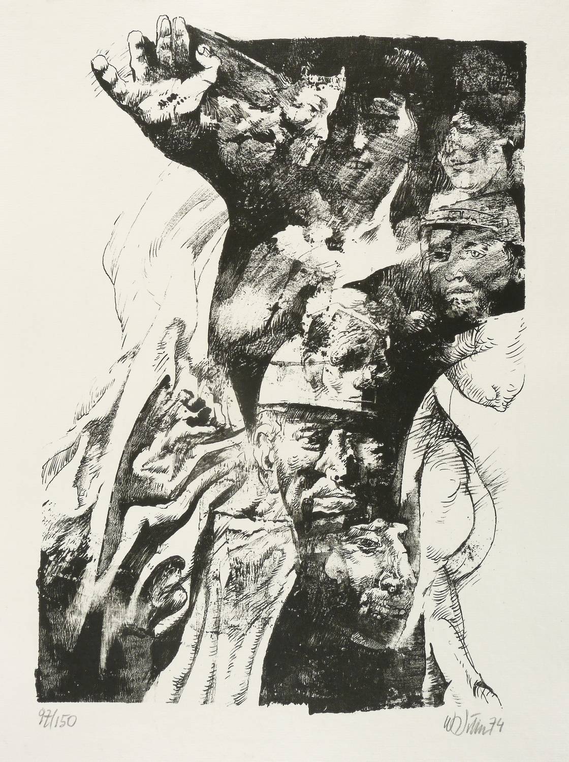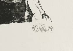 1974. Lithografie / Pinsellithografie, in Schwarz, auf hartem hellchamois Maschinenbütten. – Originale Künstlergrafik, von Willi Sitte. – Auflage Exemplar Nr. 97/150. – 42,2 x 29,3 cm (Darstellung / Druckbild), 50 x 38 cm (Blatt).