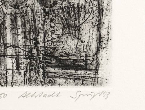 Reinhard Springer (*1953 Dresden, lebt und arbeitet in Dresden). Deutscher Maler und Grafiker. 1976-79 Abendstudium. 1979-85 Studium an der Hochschule für Bildende Künste Dresden bei Gerhard Kettner, Ursula Rzodeczko und Günter Tiedecken. Seit 1985 Mitglied im VBK und im Sächsischen Künstlerbund. 1980-89 periodisch als Pfleger im Rehabilitationszentrum Katharinenhof tätig. In seinen Werken setzt er sich mit den Erlebnissen als Pfleger auseinander. Es entstehen erste Folgen wie ‚Begegnung mit Behinderten' oder ‚Werden und Vergehen'. Arbeitsreisen auf die Insel Rügen. 1991 Studienaufenthalt im Sektionssaal des Pathologischen Instituts Darmstadt. 1989-92 Mischtechnikfolgen ‚Abrißhäuser in der Neustadt Dresden', 'Menschenbilder', 'Rügenlandschaften', Radierfolgen ‚Dresdner Brücken', 'An meinen Sohn...' 1992 Studienreise nach Norwegen. 1995 Ehrendiplom "The 2nd International Grafik Art Exhibition", Stockholm. 2002 Grafikpreis "100 Sächsische Grafiken". Wiederkehrendes Motiv in seinen Arbeiten ist der Verfall als Folge von Lieblosigkeit der die Vergänglichkeit und Zerbrechlichkeit des Lebens offenbart.