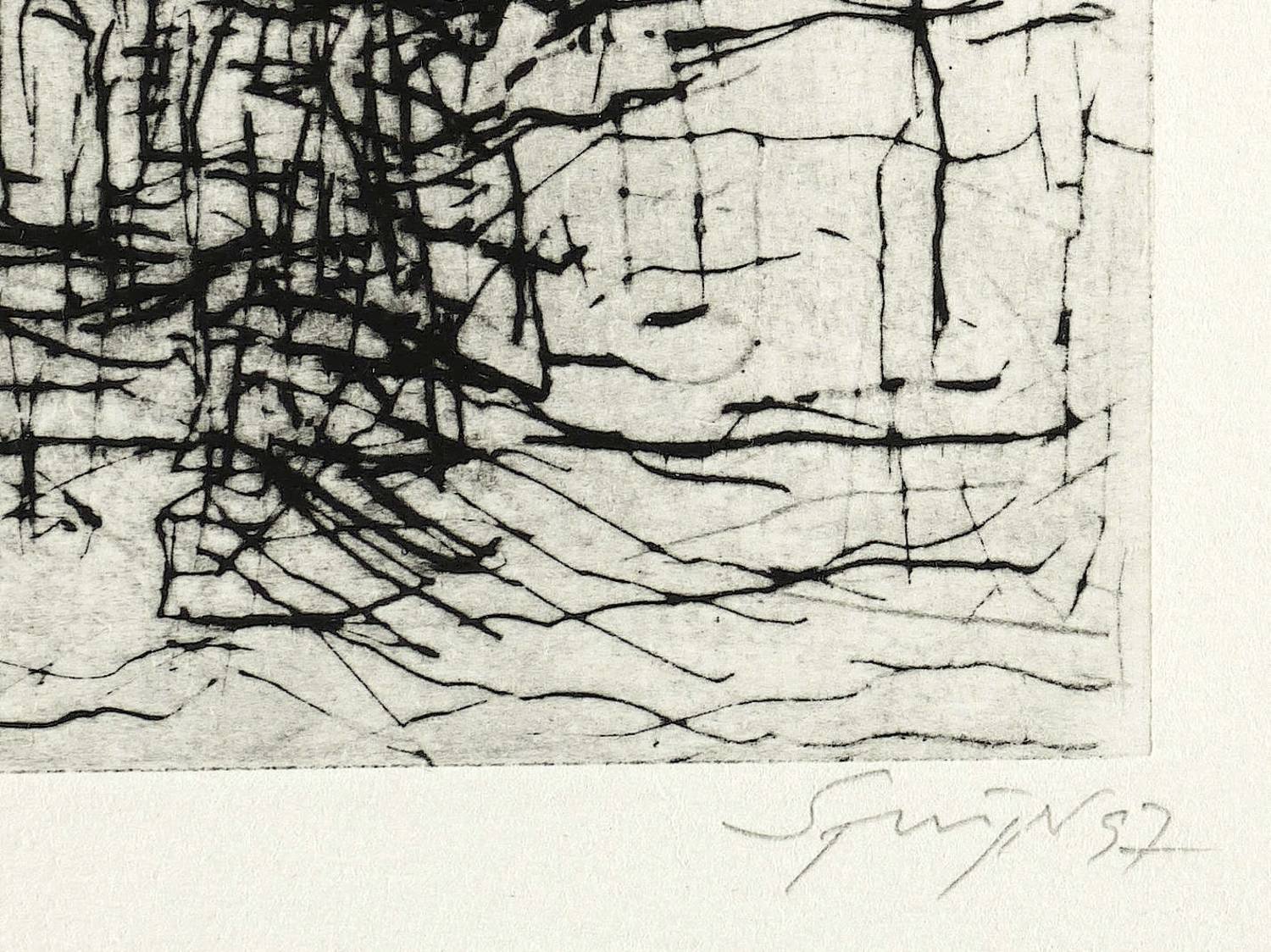 1997. Radierung / Strichätzung & Reservage, in Schwarz, auf Büttenpapier. – Originale Künstlergrafik, von Reinhard Springer. – Künstlerexemplar e.a.. – 14,0 x 20,3 cm (Darstellung / Platte), 26,5 x 39,3 cm (Blatt).
